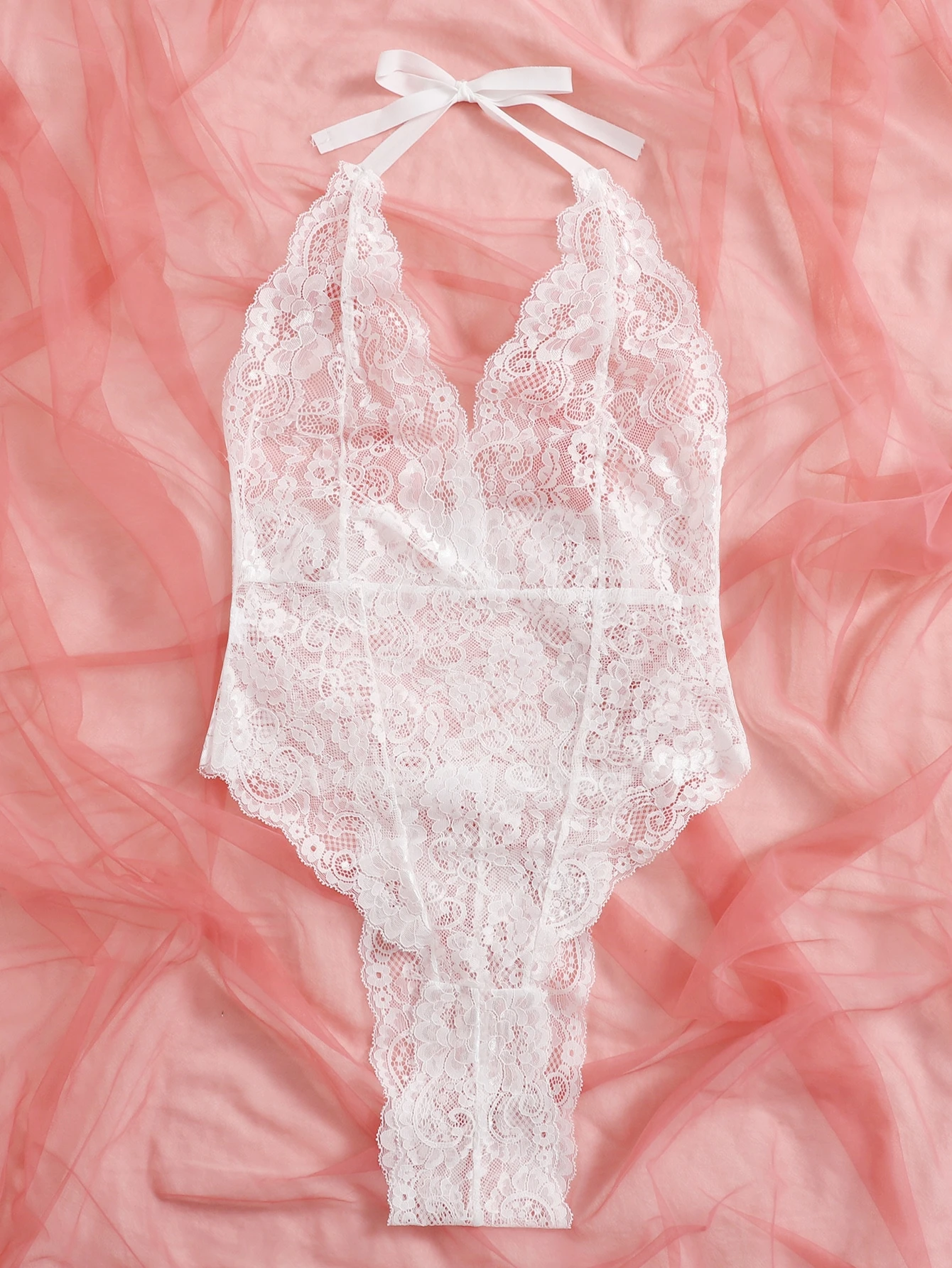Floral Lace Halter Teddy Bodysuit
