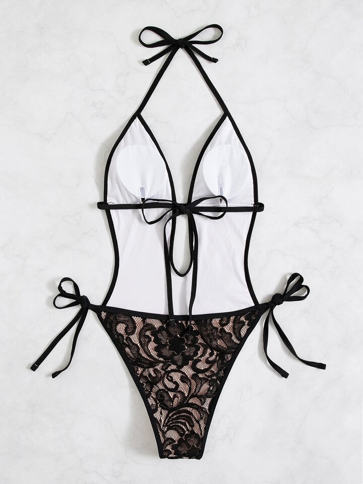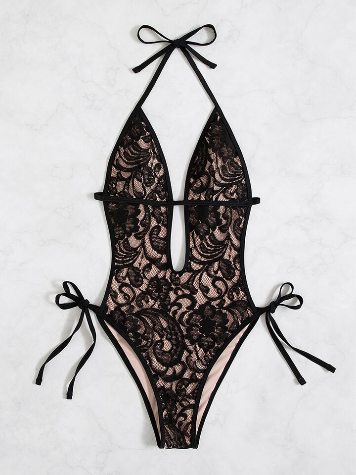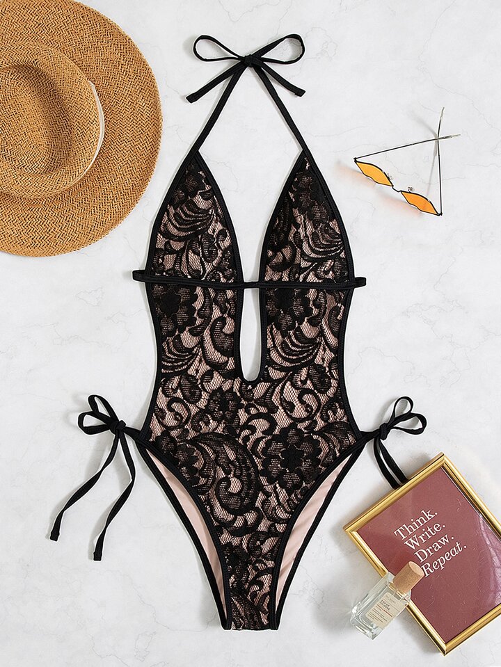 Floral Lace Tie Side One Piece Swimsuit