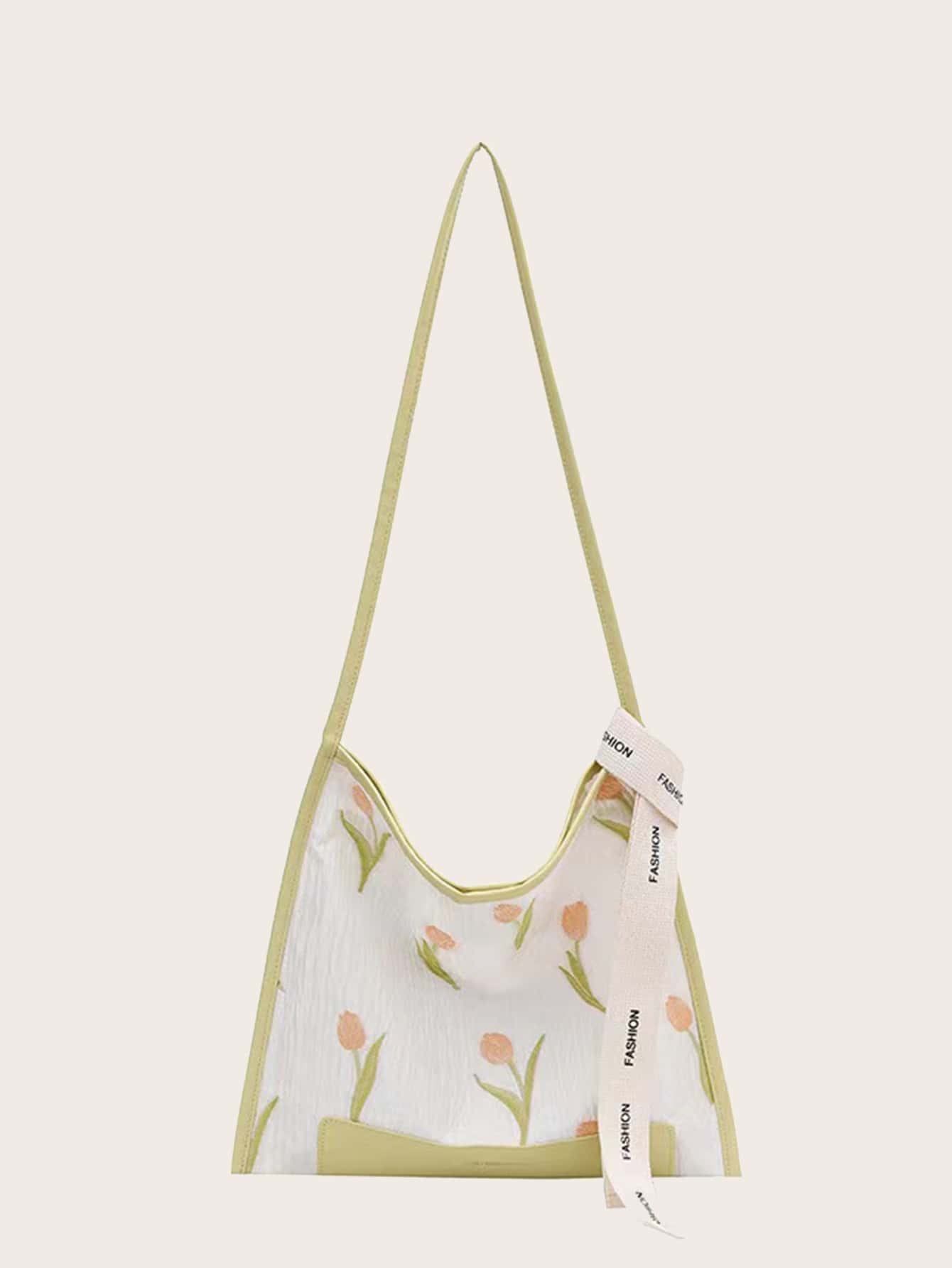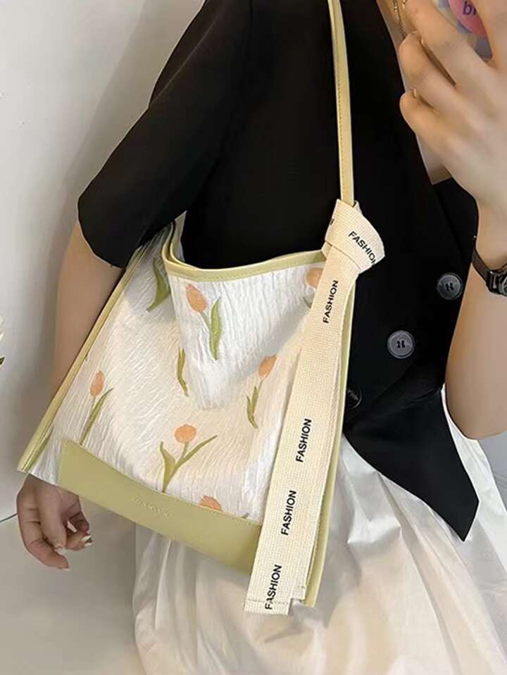 Floral Pattern Skinny Scarf Decor Hobo Bag