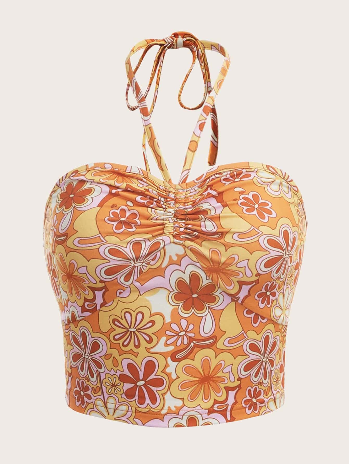 Floral Print Ruched Halter Top