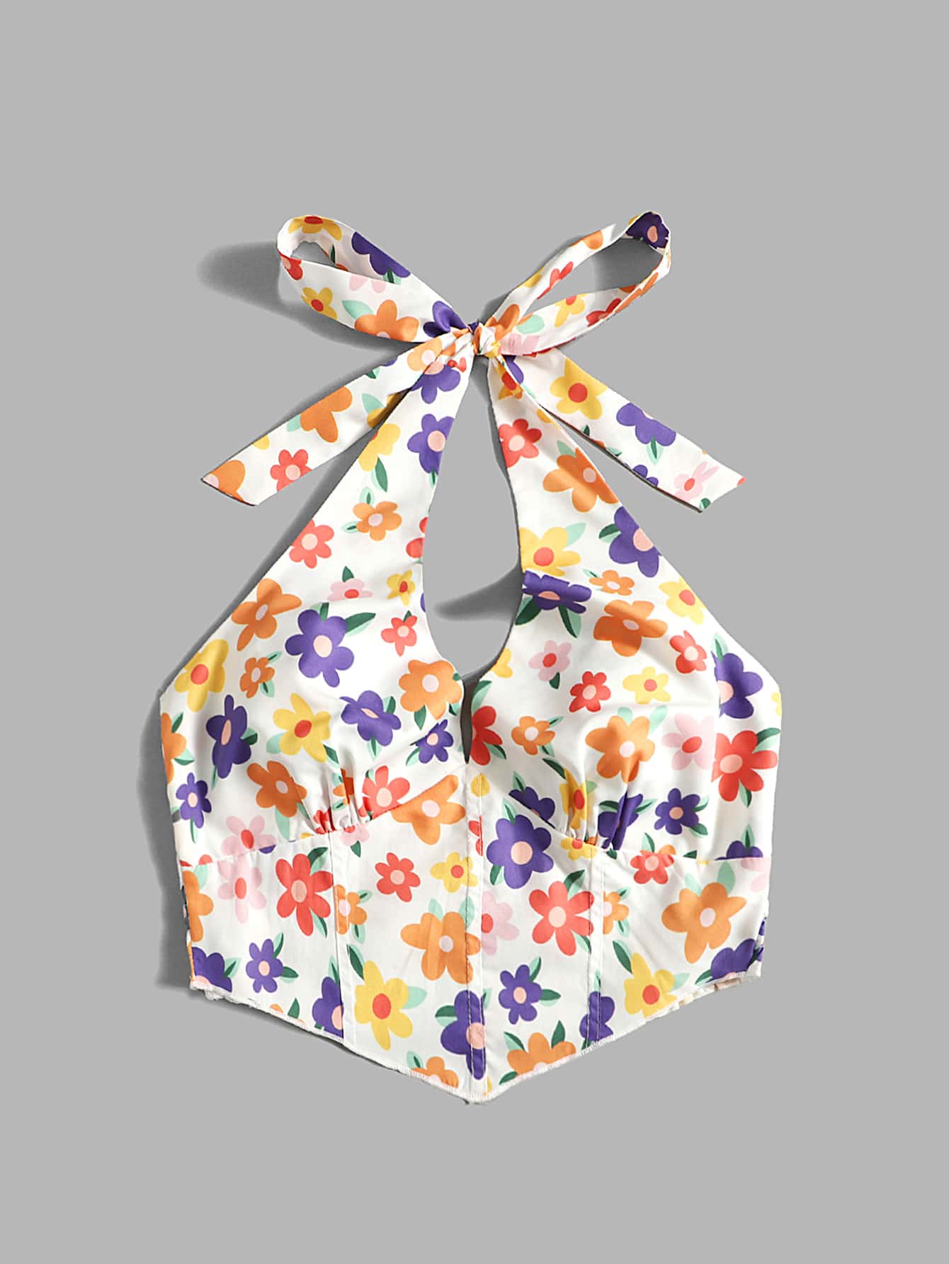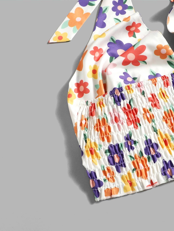 Floral Print Shirred Crop Halter Top