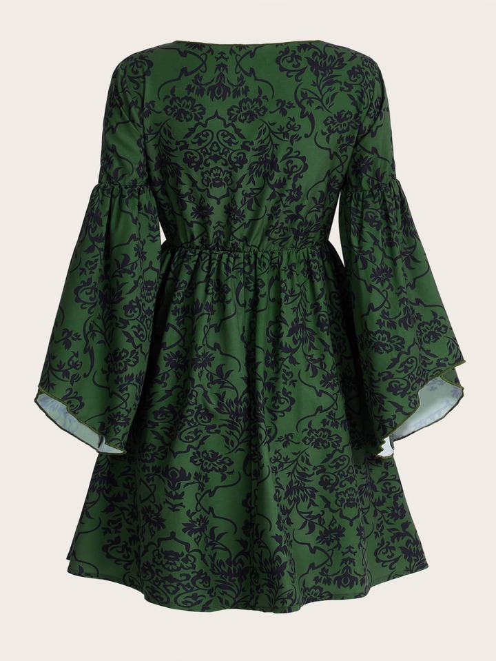 Floral Print Tie Front Cut Out Dress