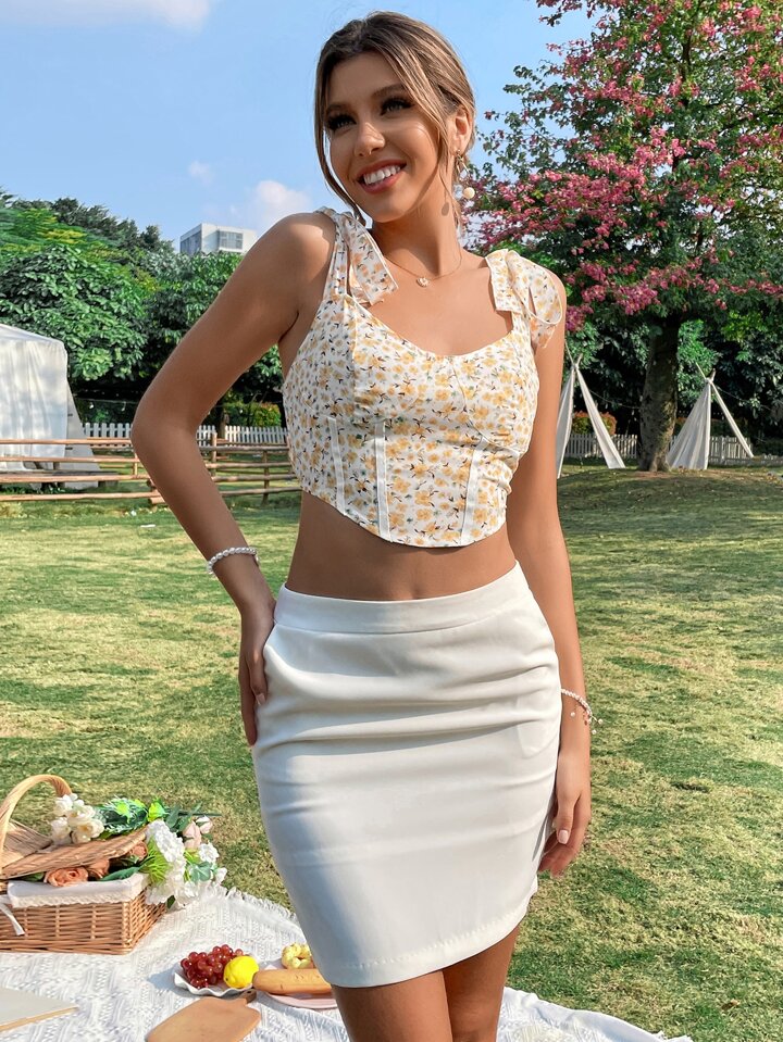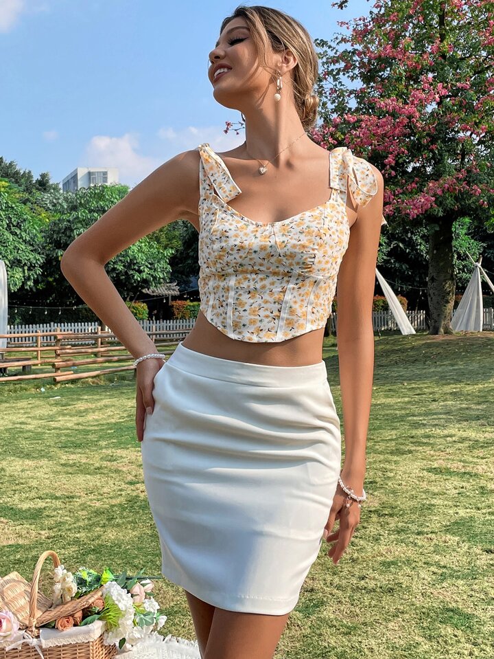 Floral Print Tie Shoulder Crop Wide Strap Top