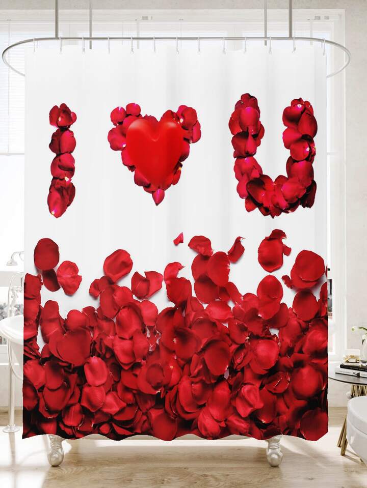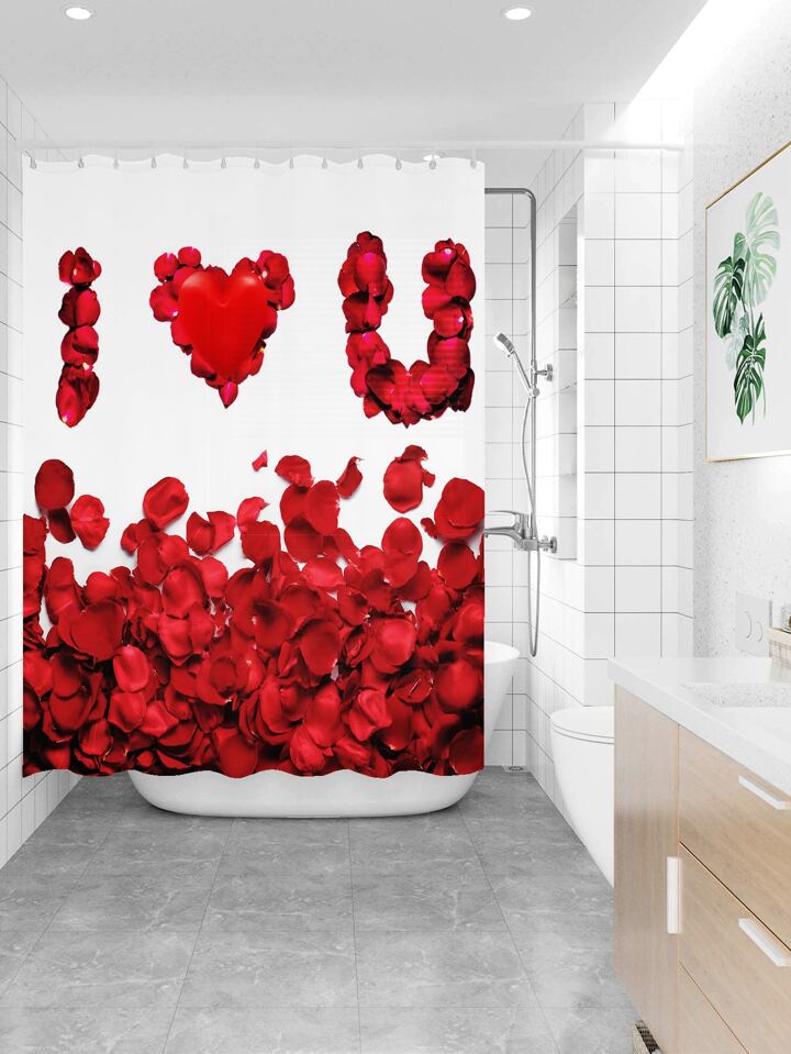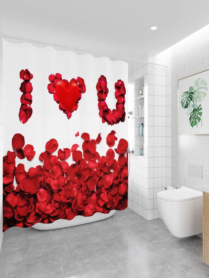 Floral & Slogan Graphic Shower Curtain