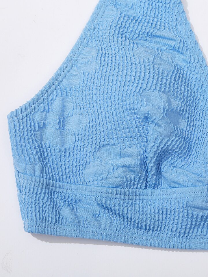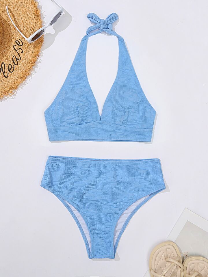 Floral Textured Halter Bra & High Waisted Bottom 2 Piece Bathing Suit
