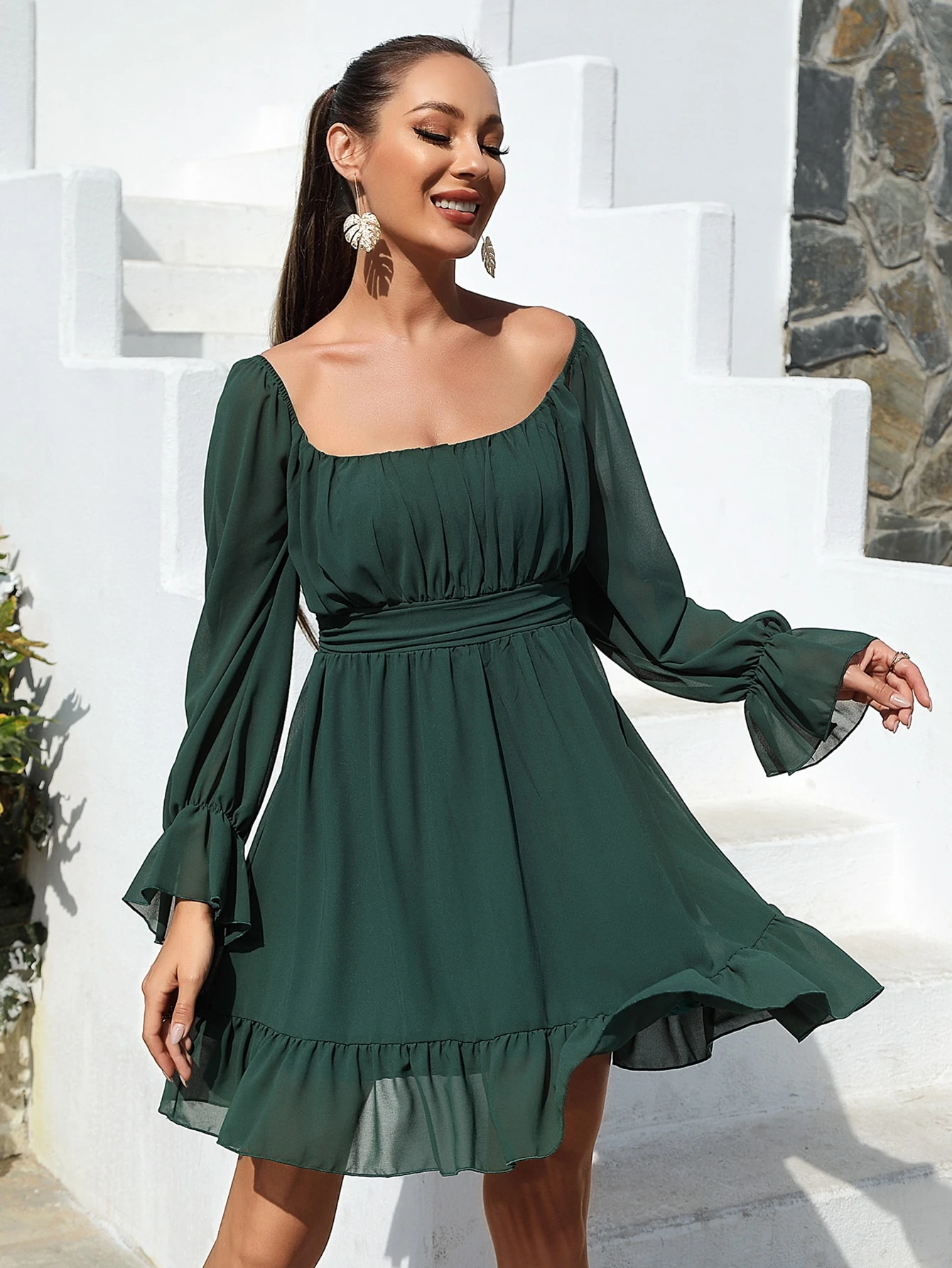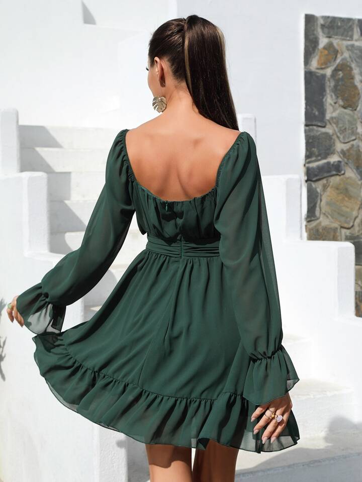 Flounce Sleeve Ruffle Hem Chiffon Dress