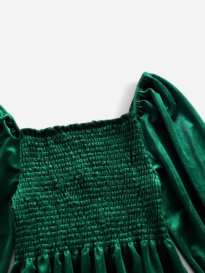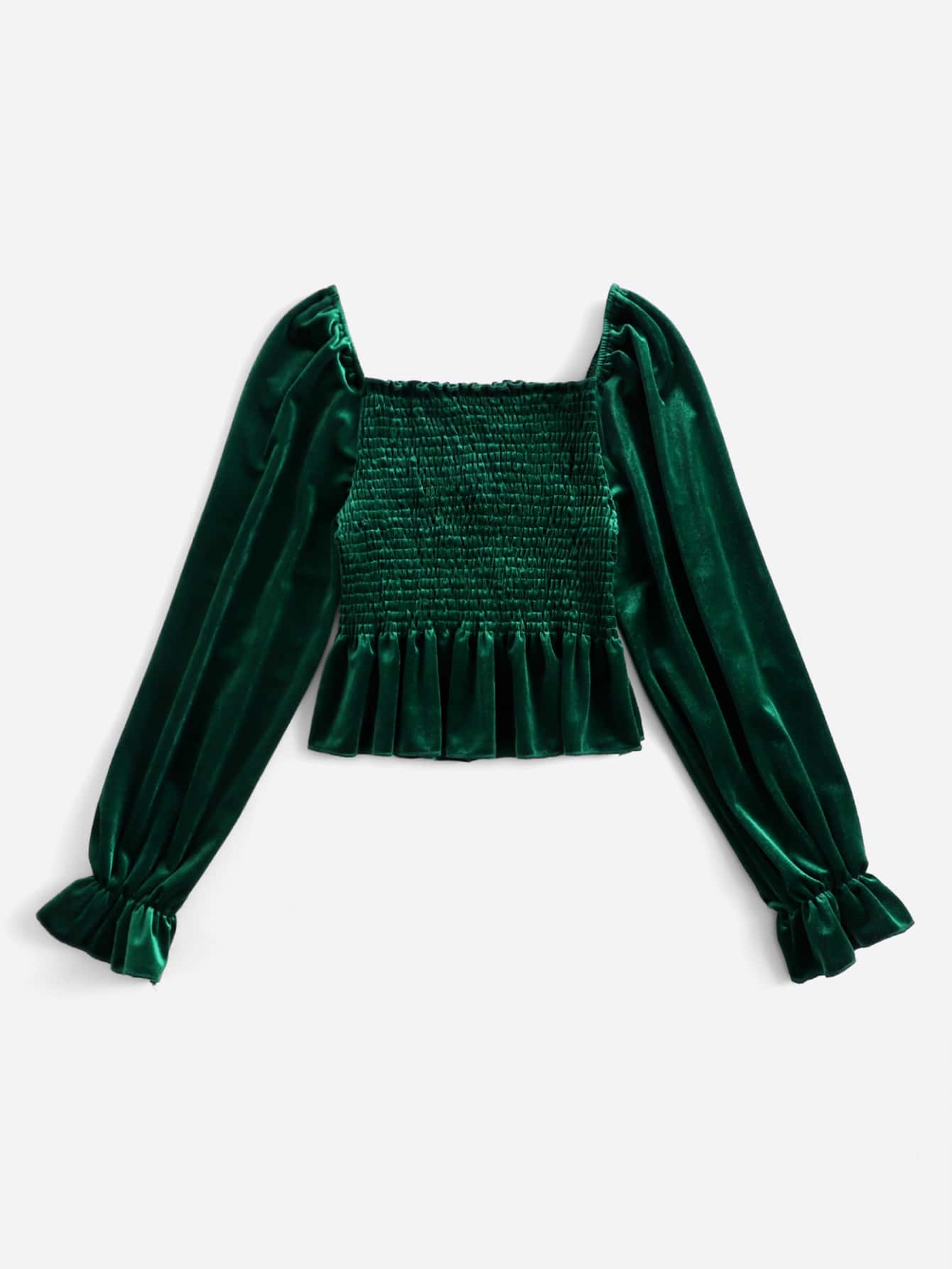 Flounce Sleeve Shirred Velvet Tee