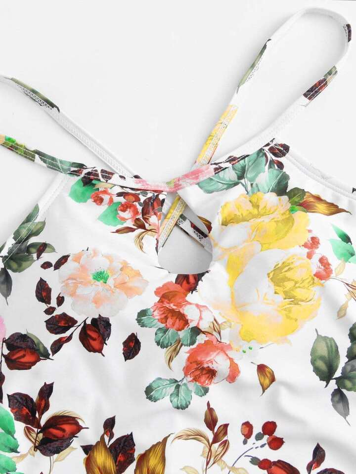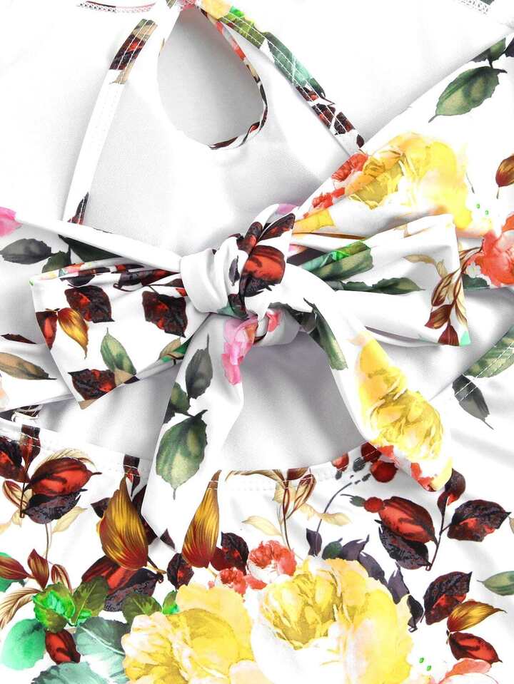 Flower Print Bow Tie Swimsuit