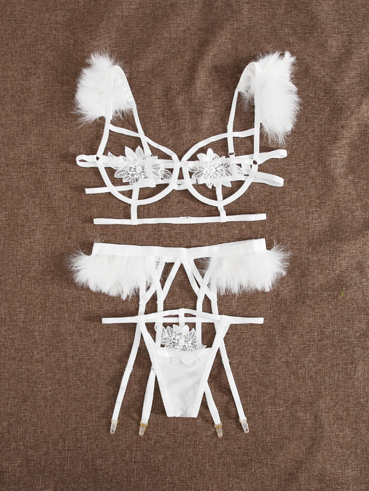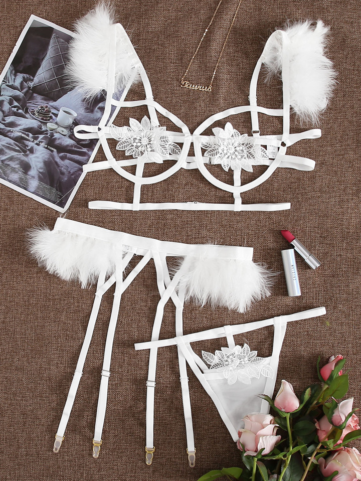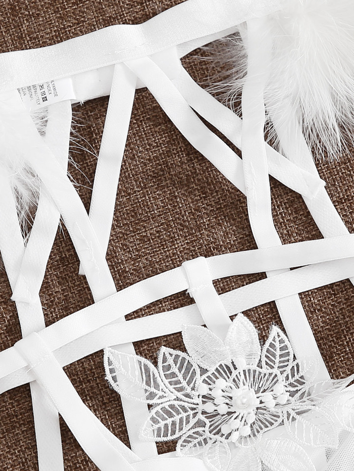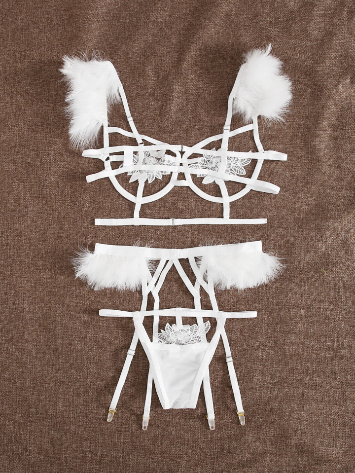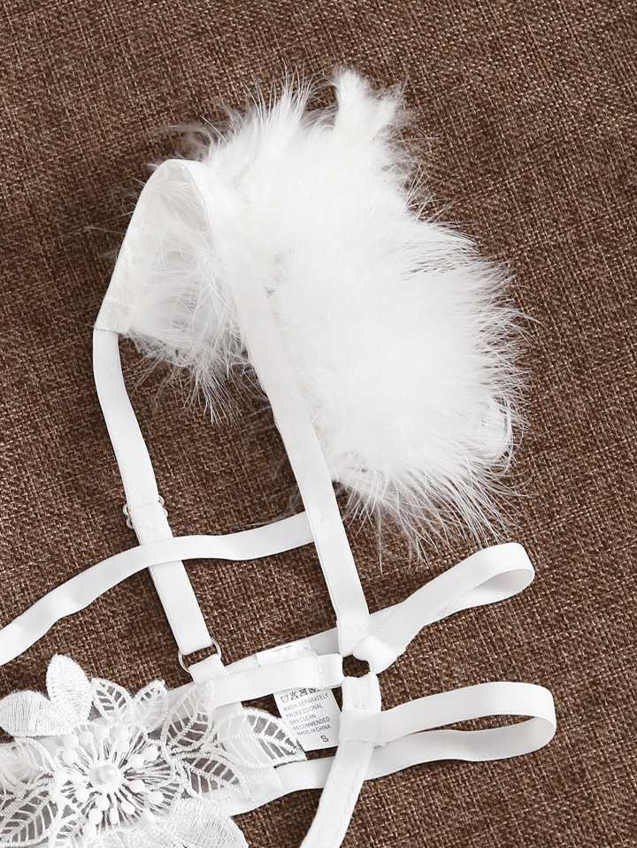 Fluffy Suspender Harness Lingerie Set