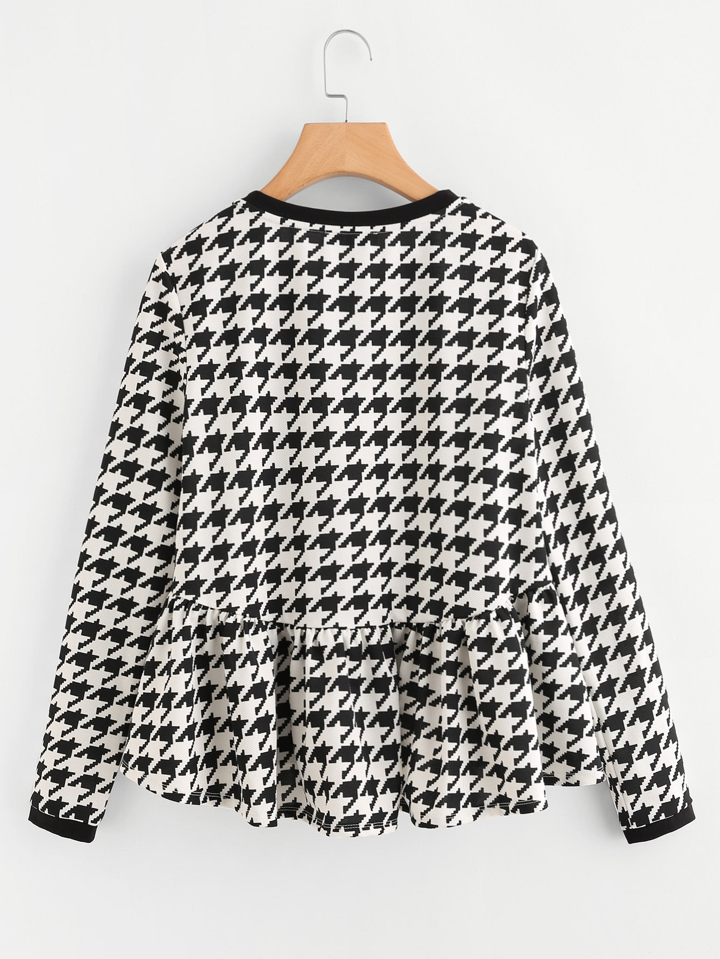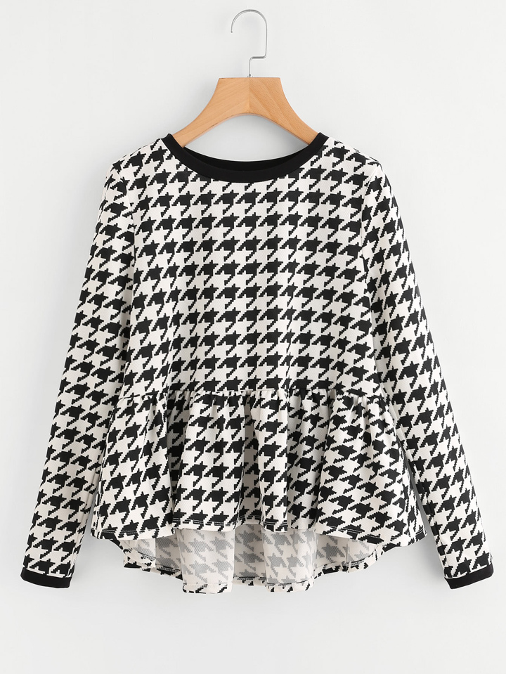 Frilled Dip Hem Houndstooth Top