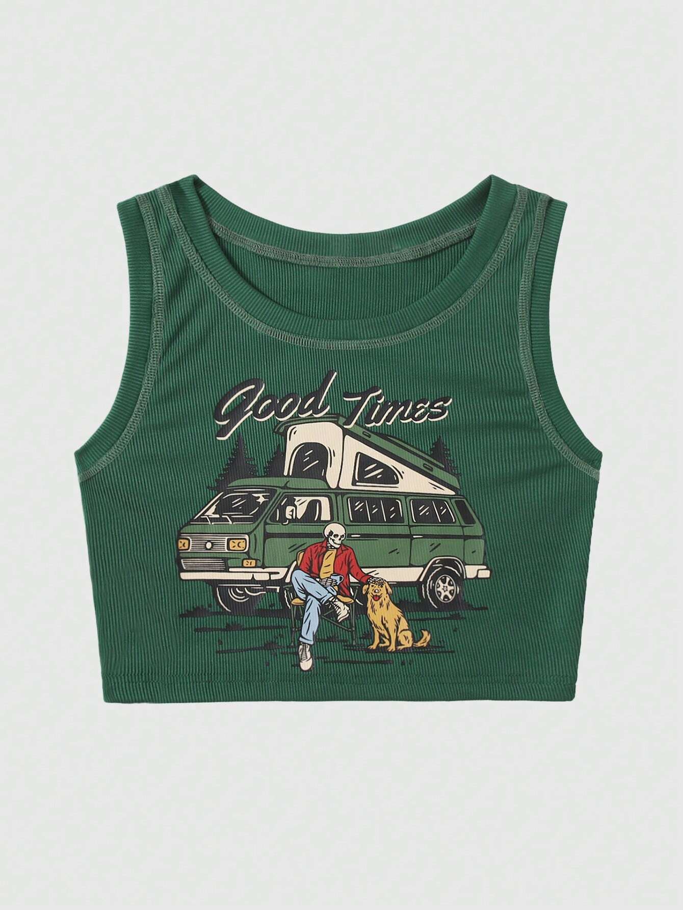 Frmlsstudio Letter Skull & Dog Graphic Ribbed Tank Top