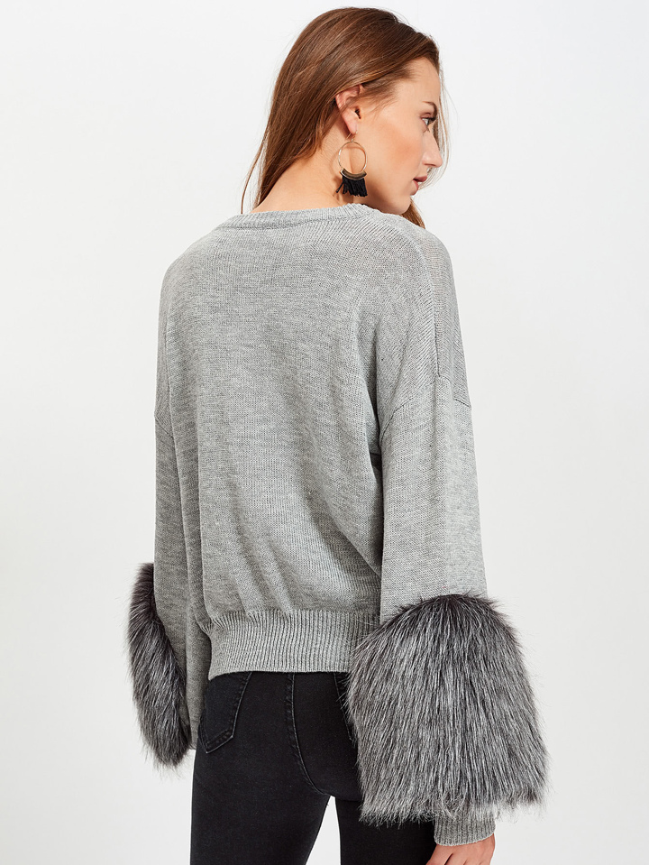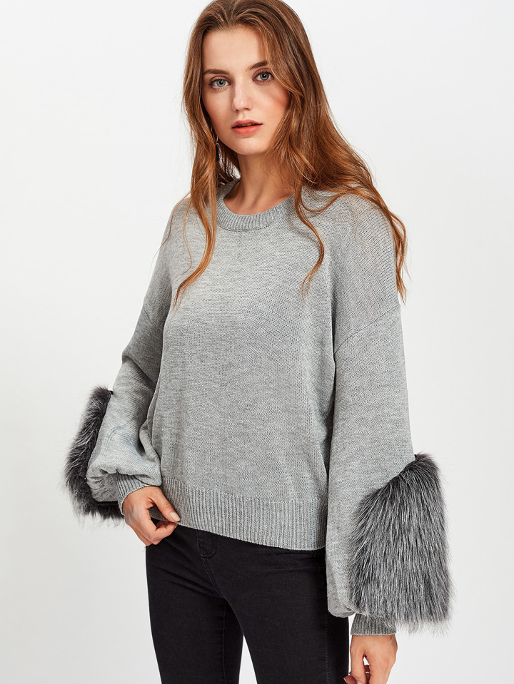 Fuzz Embellished Bishop Sleeve Jumper