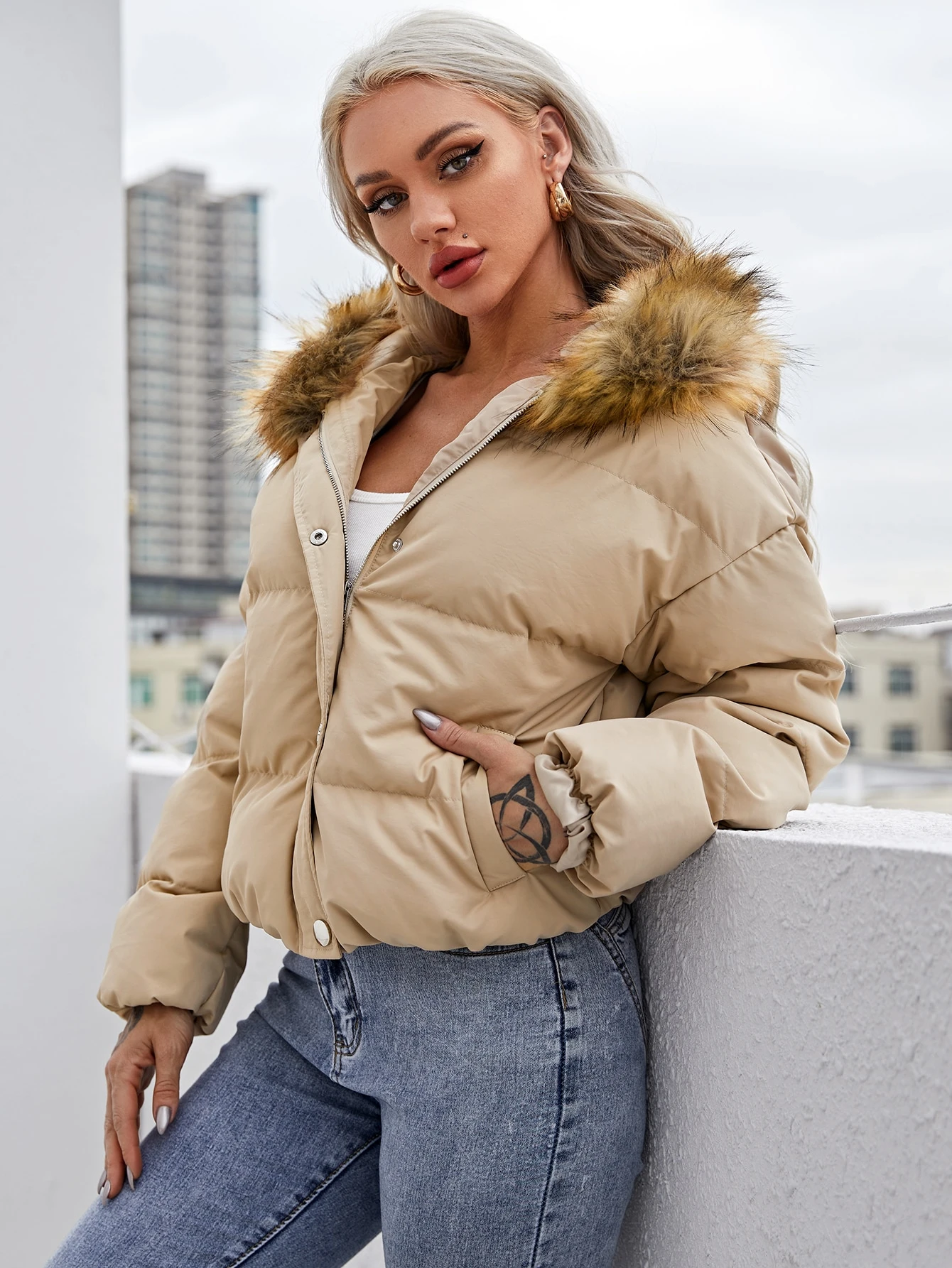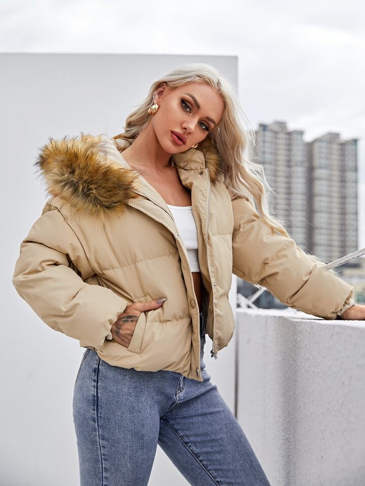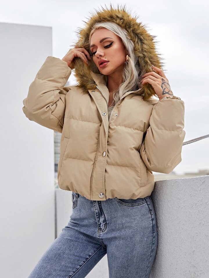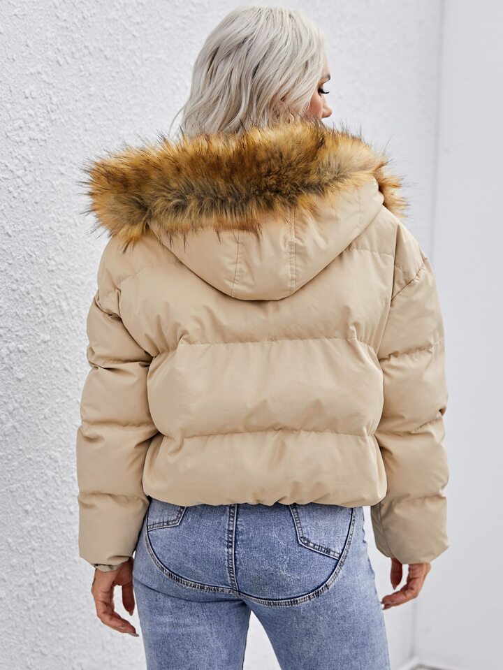 Fuzzy Hooded Puffer Jacket