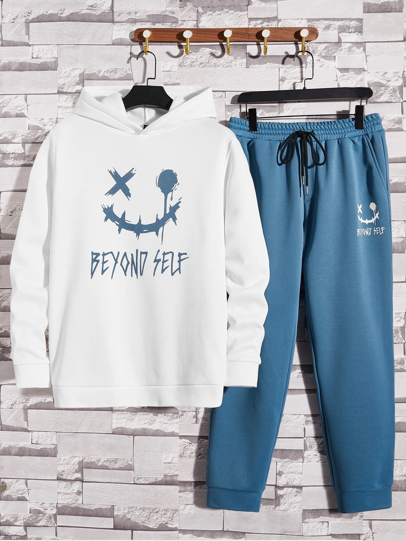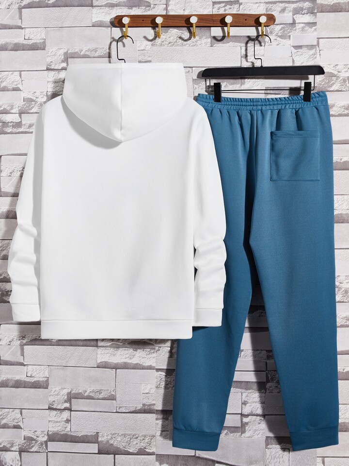 GENTILAND Guys Cartoon & Letter Graphic Hoodie & Drawstring Waist Sweatpants