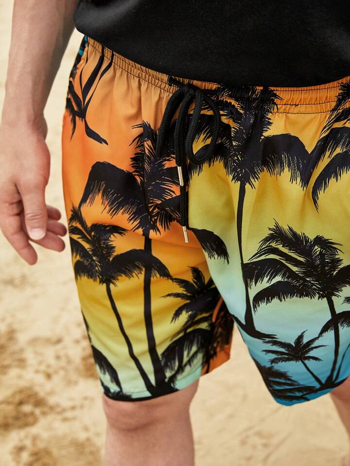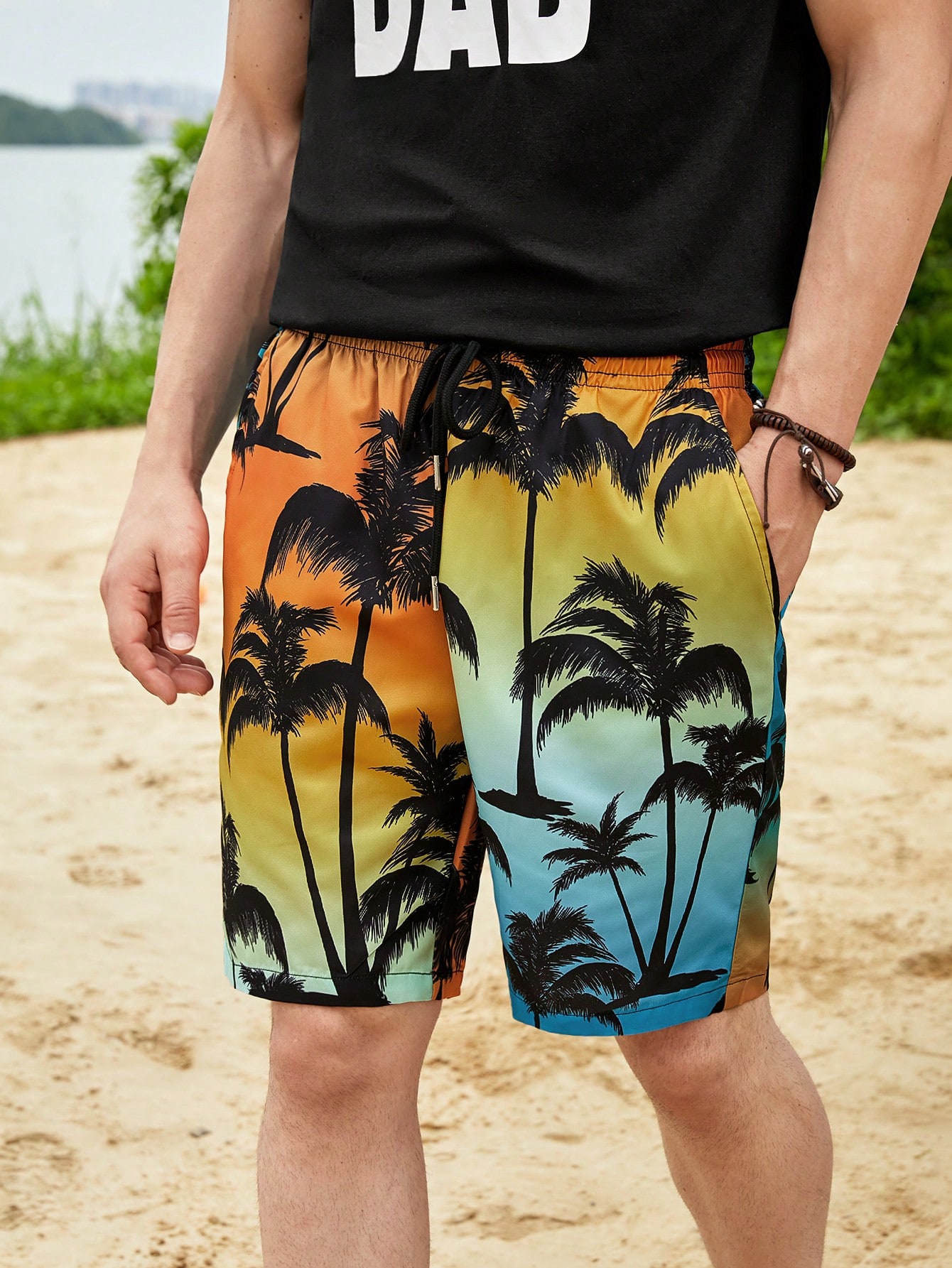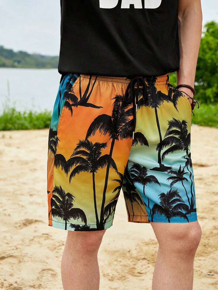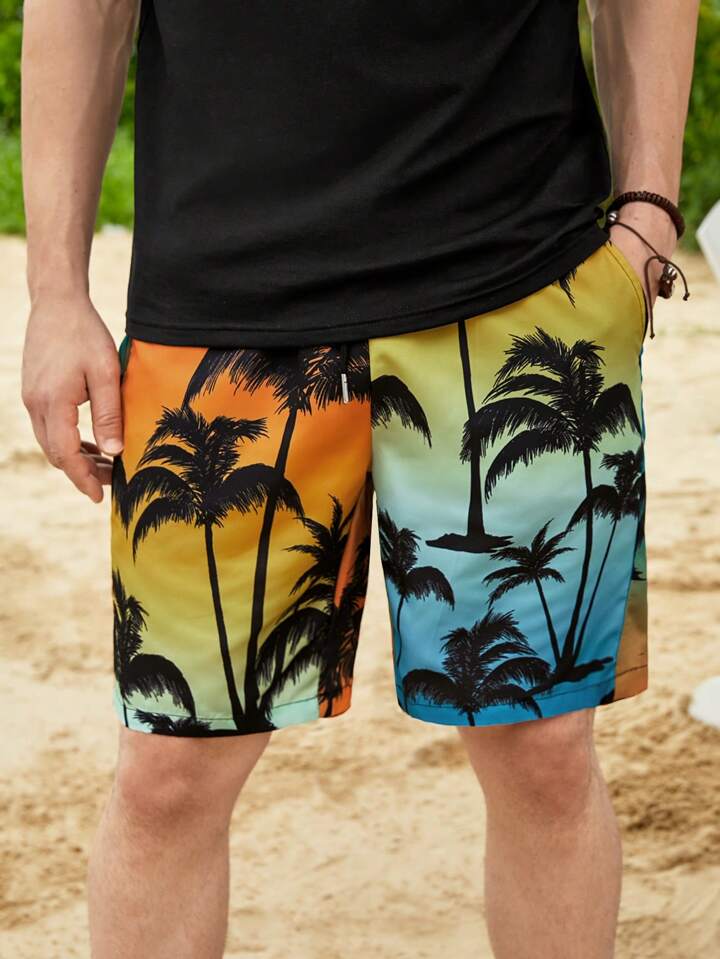 GENTILAND Guys Coconut Tree Print Drawstring Waist Shorts