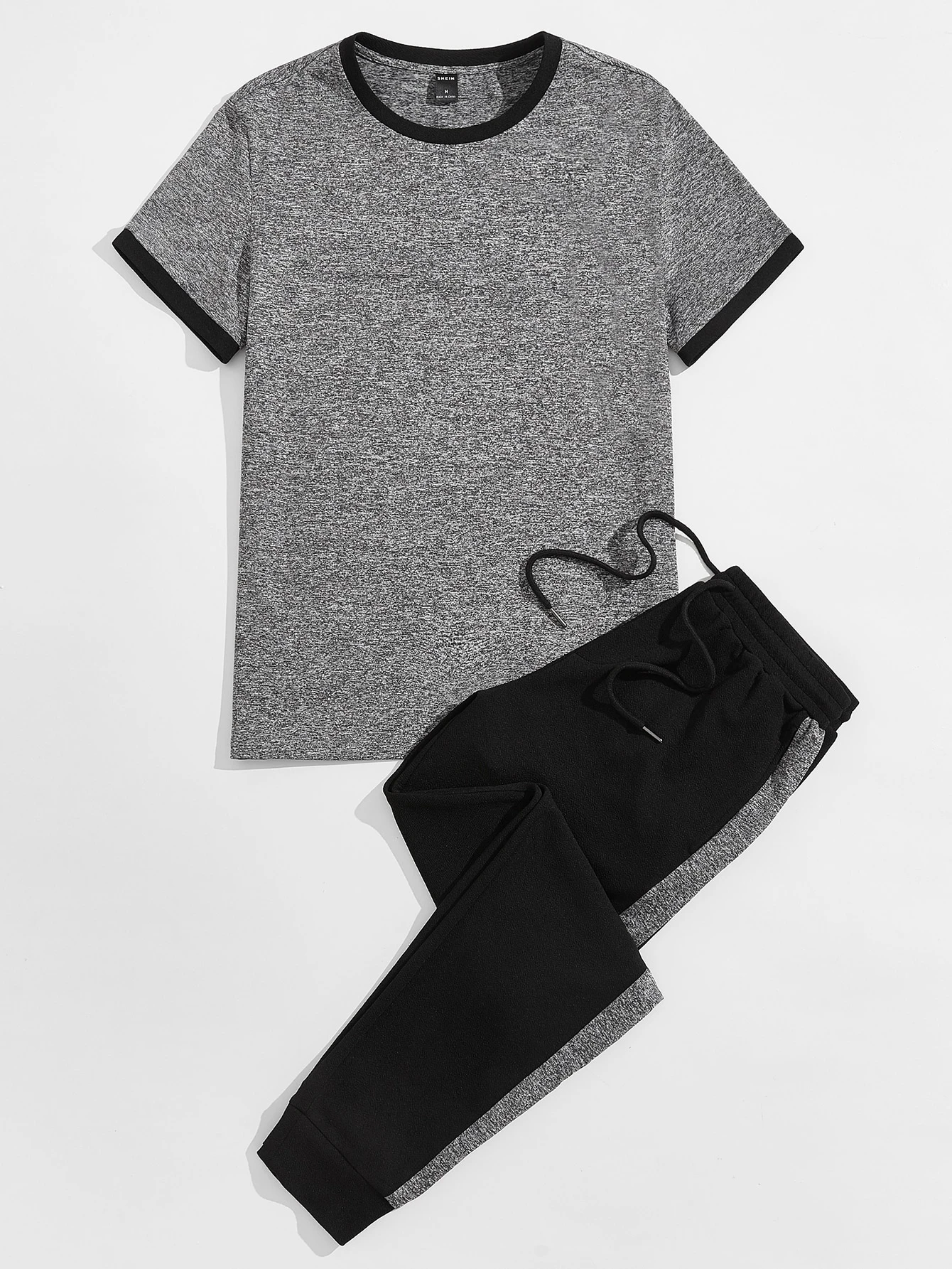GENTILAND Guys Contrast Trim Marled Tee & Drawstring Waist Pants