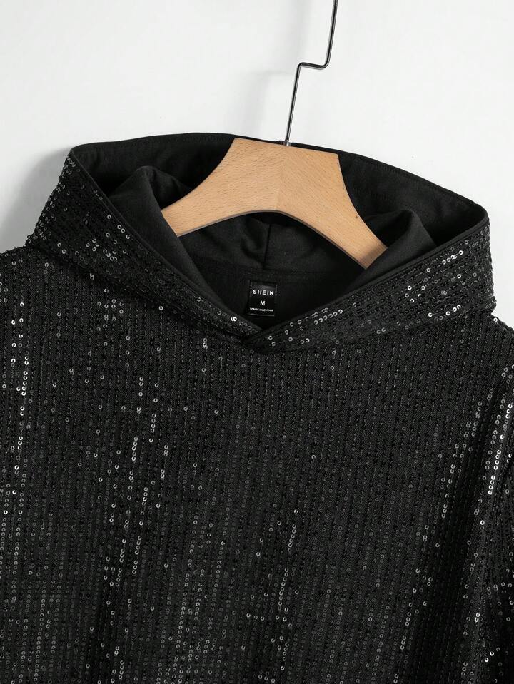 GENTILAND Guys Drop Shoulder Sequin Hoodie