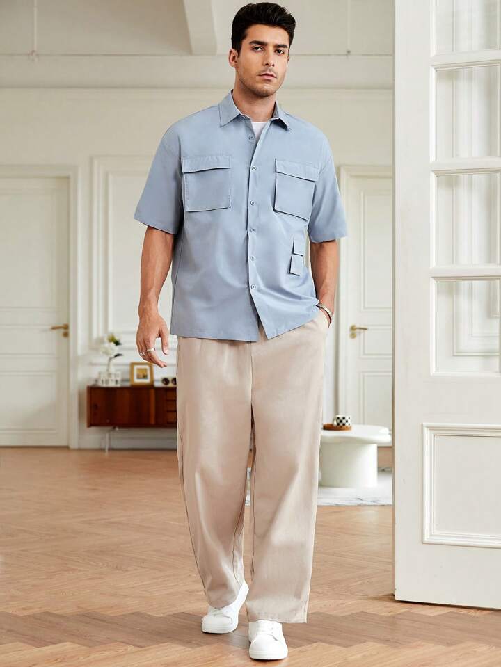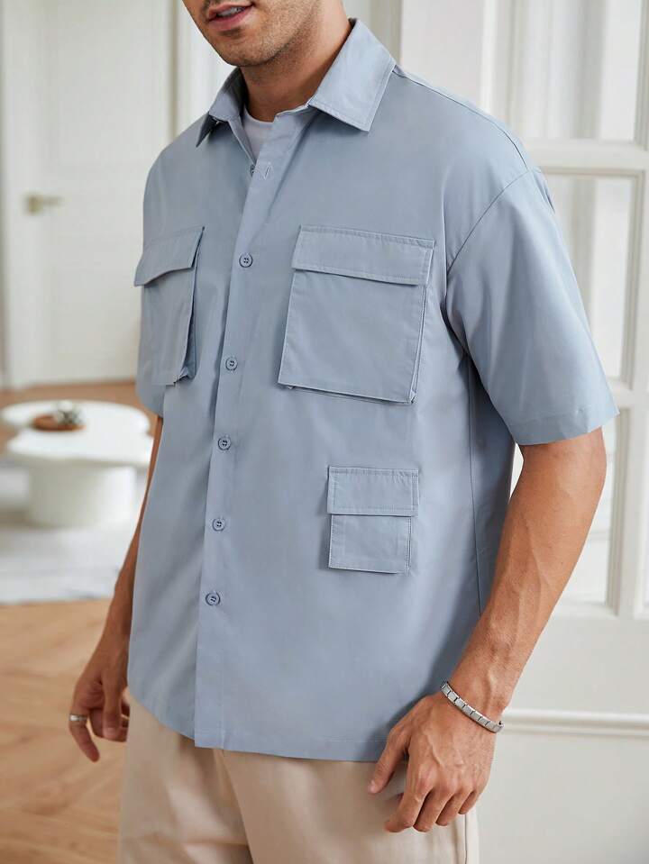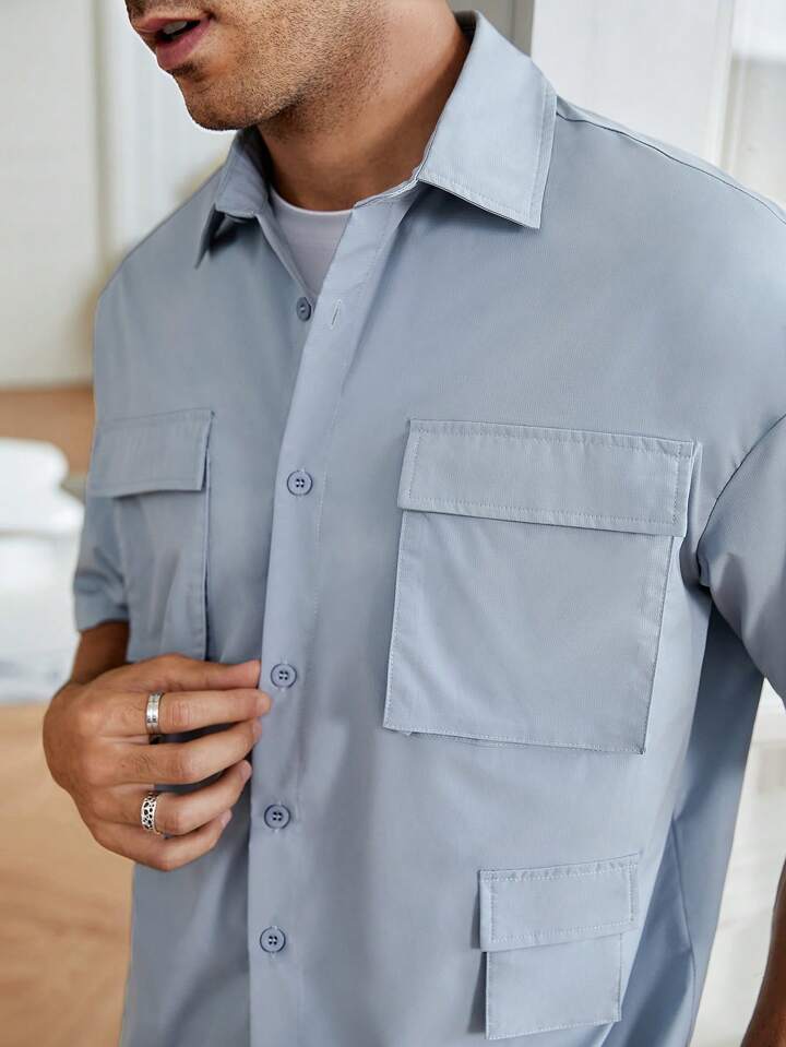 GENTILAND Guys Flap Pocket Drop Shoulder Shirt