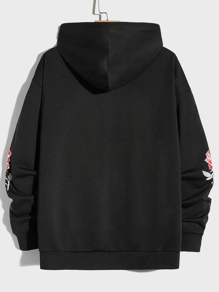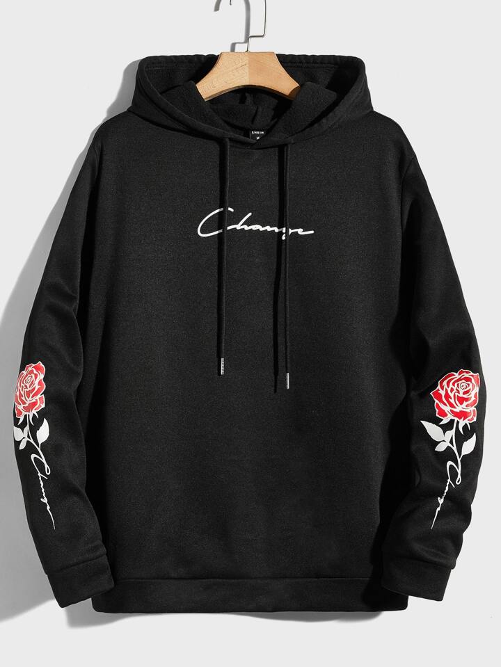 GENTILAND Guys Letter & Floral Print Drawstring Hoodie