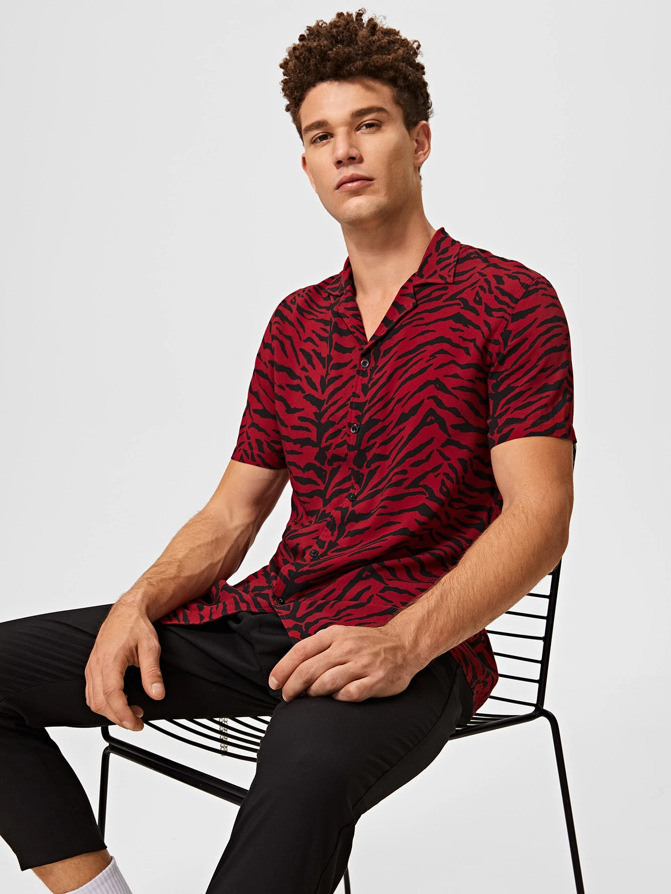 GENTILAND Guys Notched Collar Tiger Striped Shirt