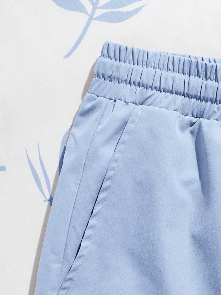 GENTILAND Guys Tropical Print Tee & Drawstring Waist Shorts