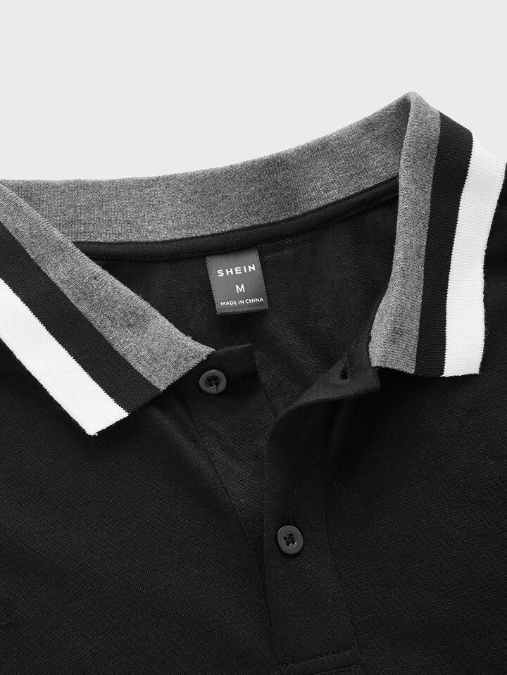 GENTILAND Guys Unicorn Print Striped Trim Polo Shirt