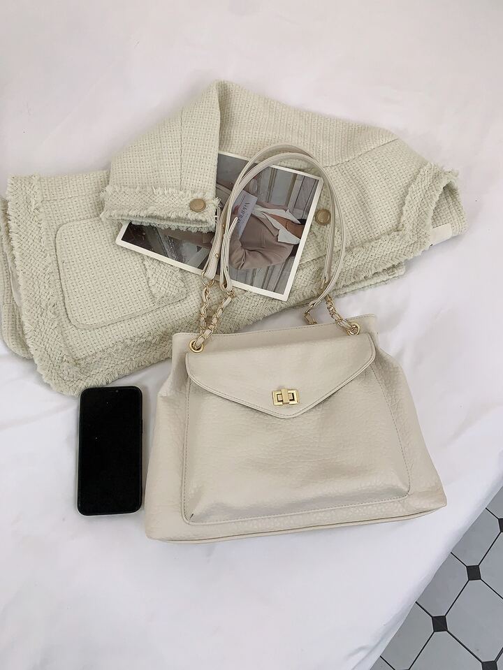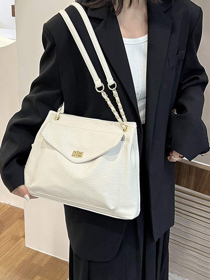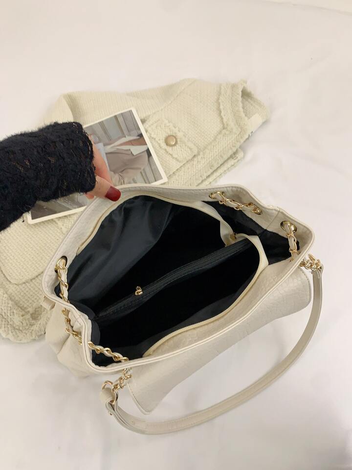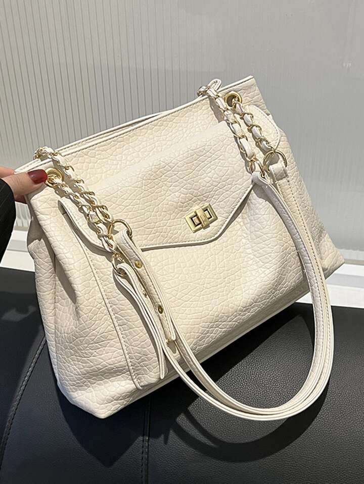 Geometric Embossed Chain Decor Shoulder Tote Bag