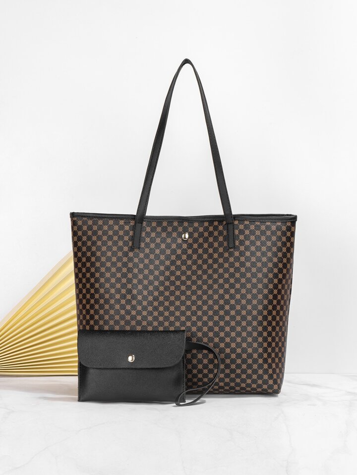 Geometric Pattern Contrast Binding Shoulder Tote Bag With Purse