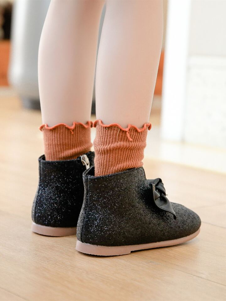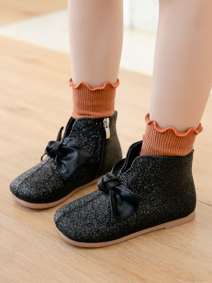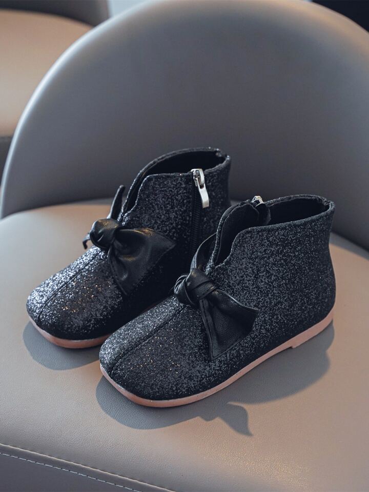 Girls Knot Decor Glitter Ankle Boots