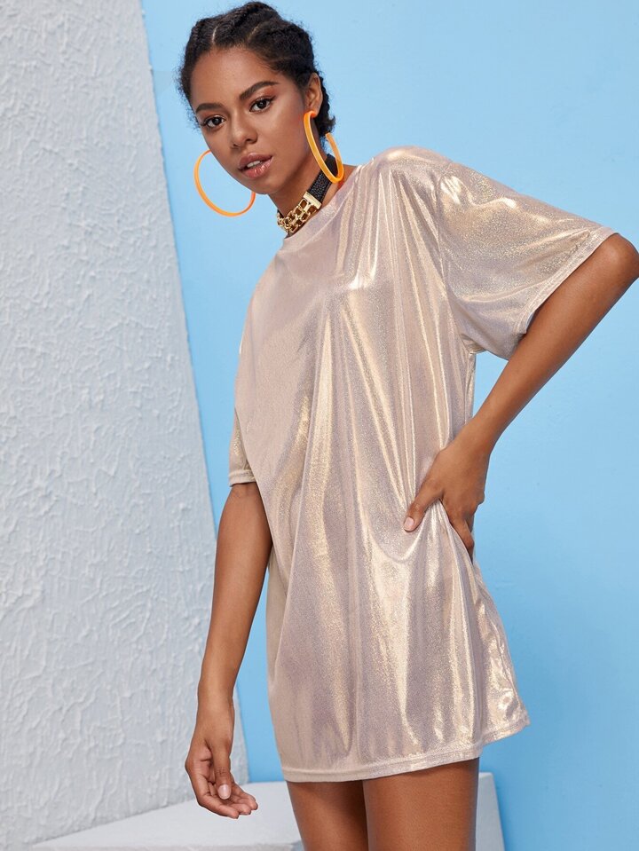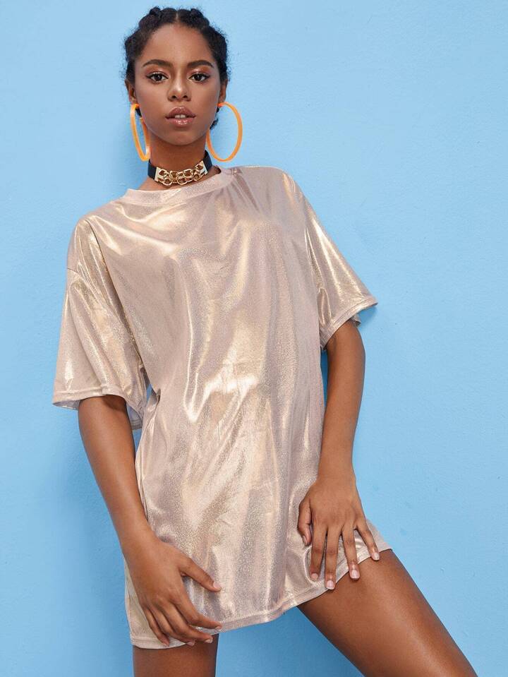 Glitter Gold Drop Shoulder Dress