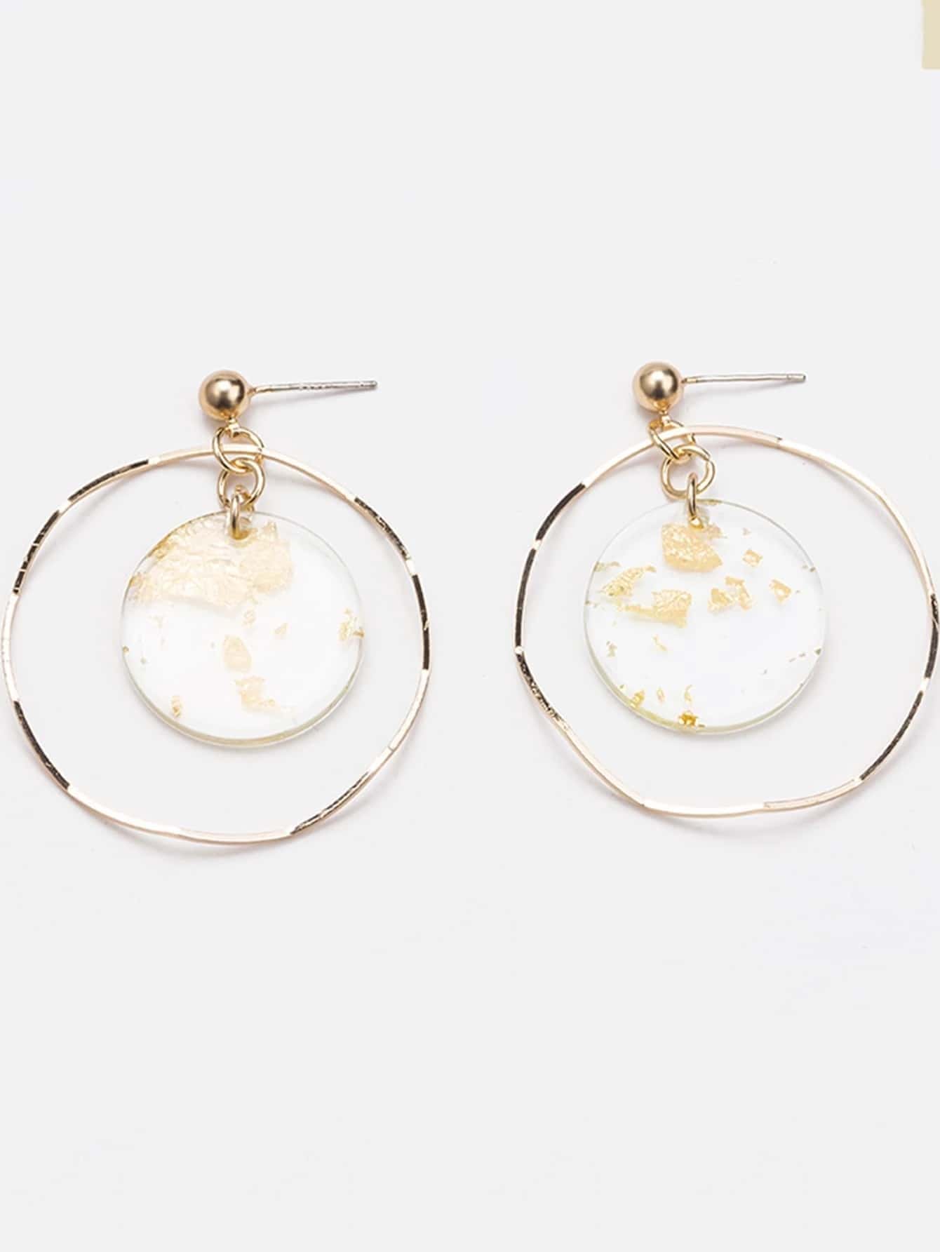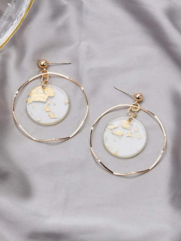 Gold Foil Detail Round Drop Earrings
