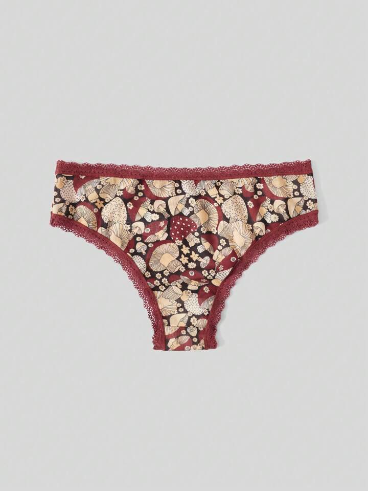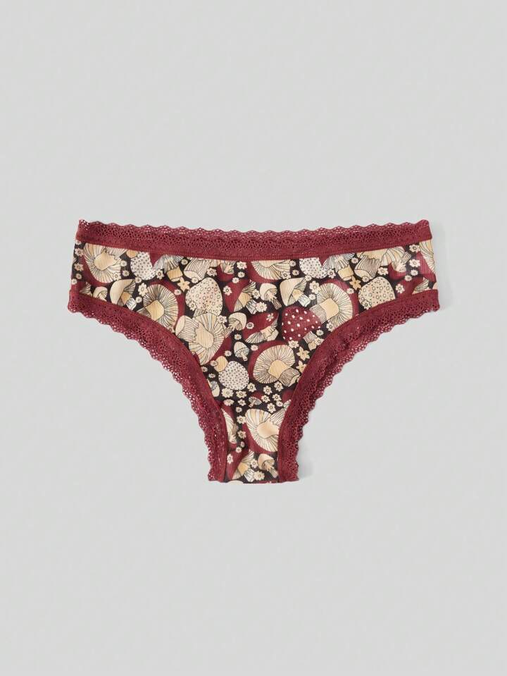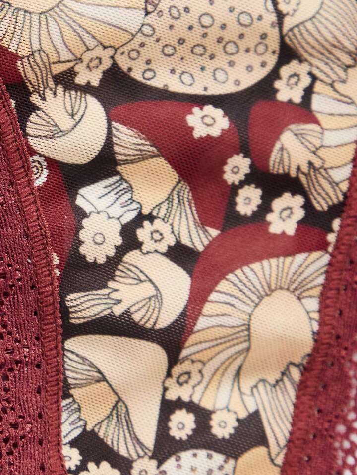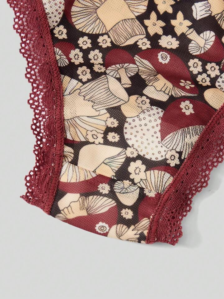 Goldendazeillustration Fairycore Mushroom Graphic Contrast Lace Panty