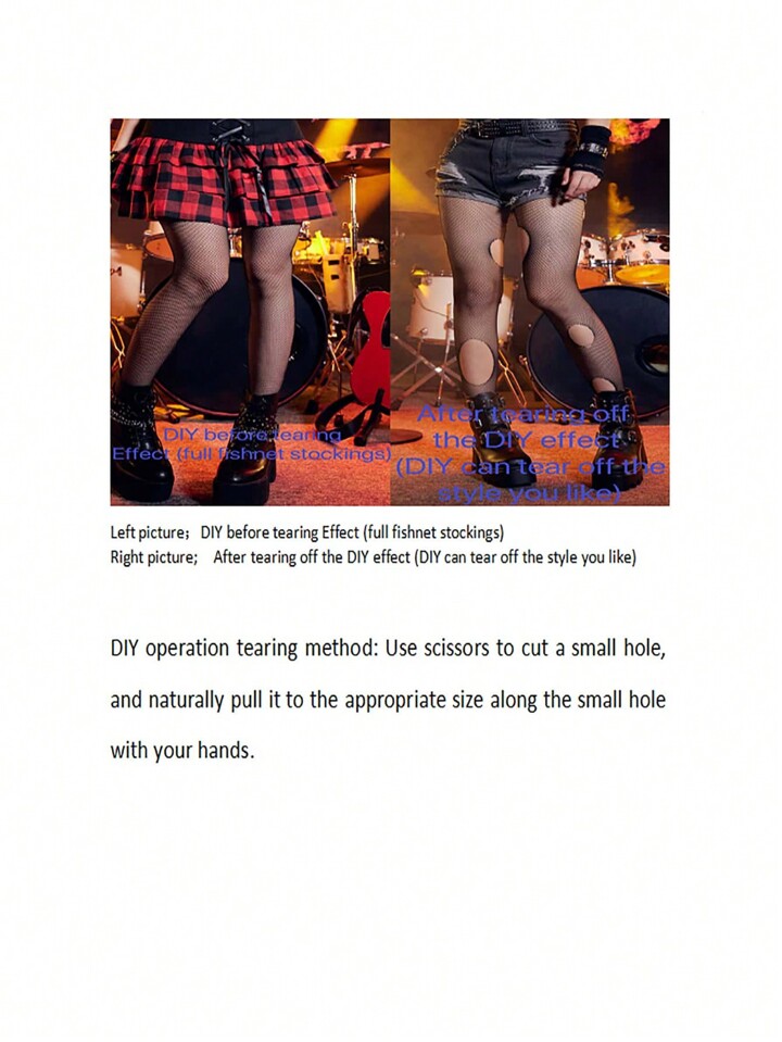 Goth 1 Pair Black DIY Fishnet Stockings Tights Can Tear To The Style You Like