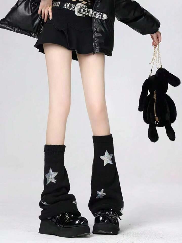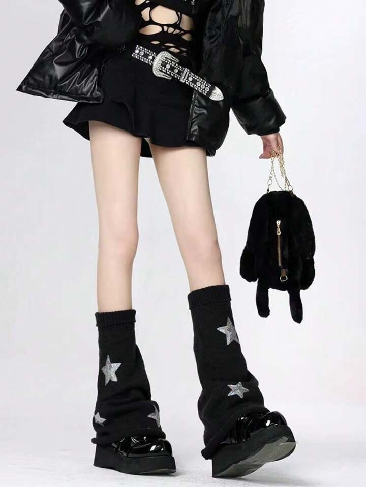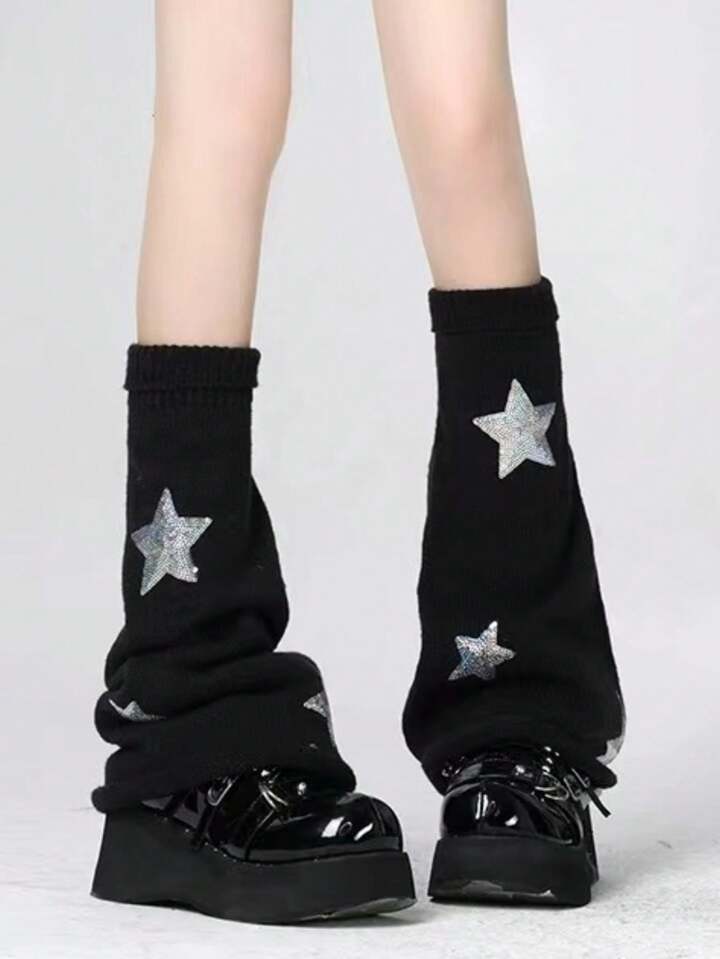 Goth 1 Pair Black Star Pattern Thigh High Socks For Women