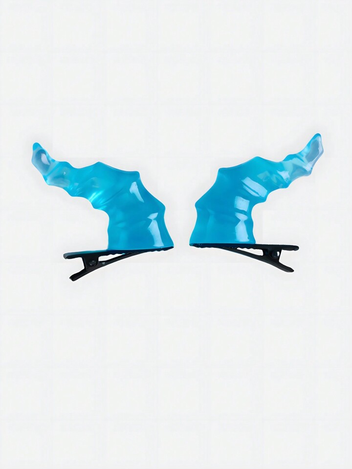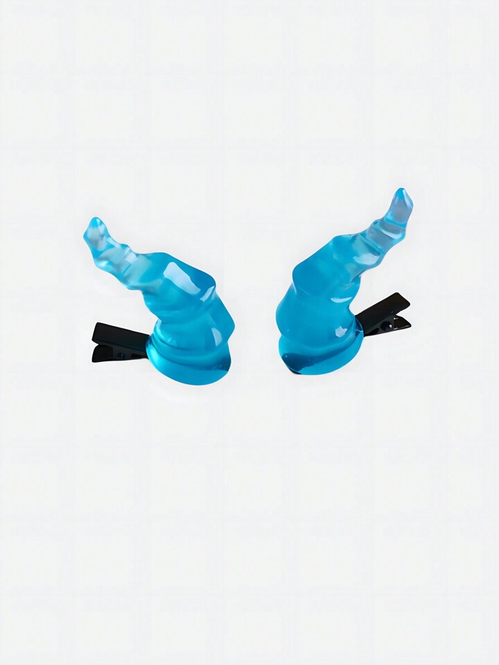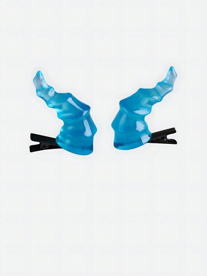 Goth 1 Pair Blue Spiral Devil Horns Hair Clips, Suitable For Stage Decor, Festivals And Parties, Halloween
