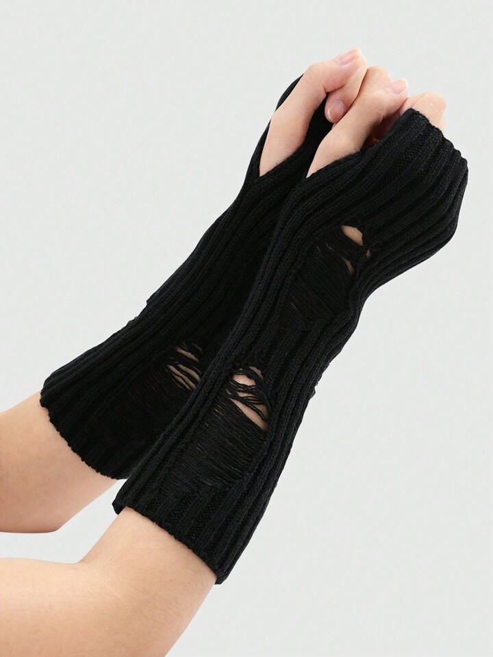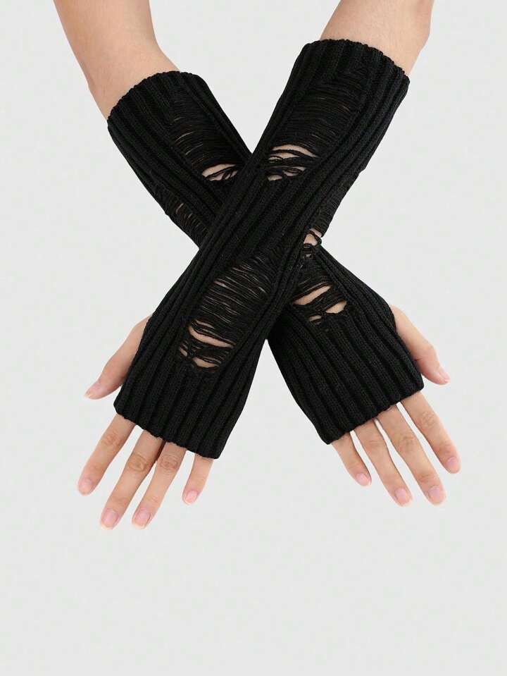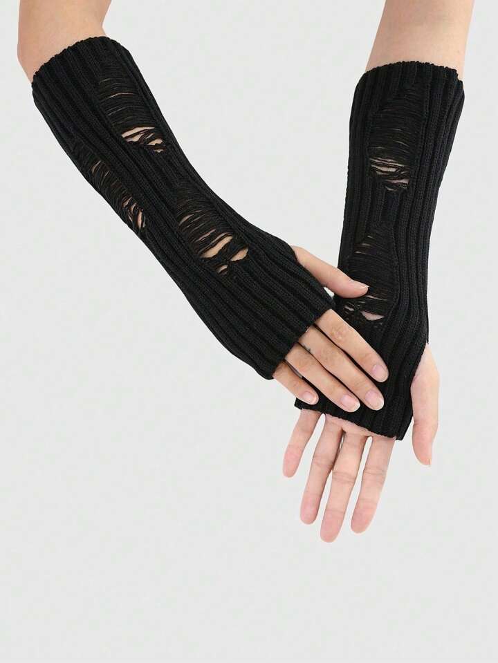 Goth 1 Pair Dark Distressed Knit Arm Warmers For Women