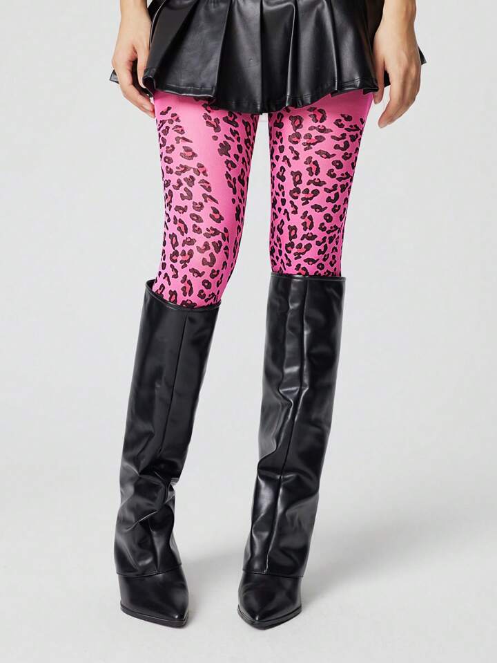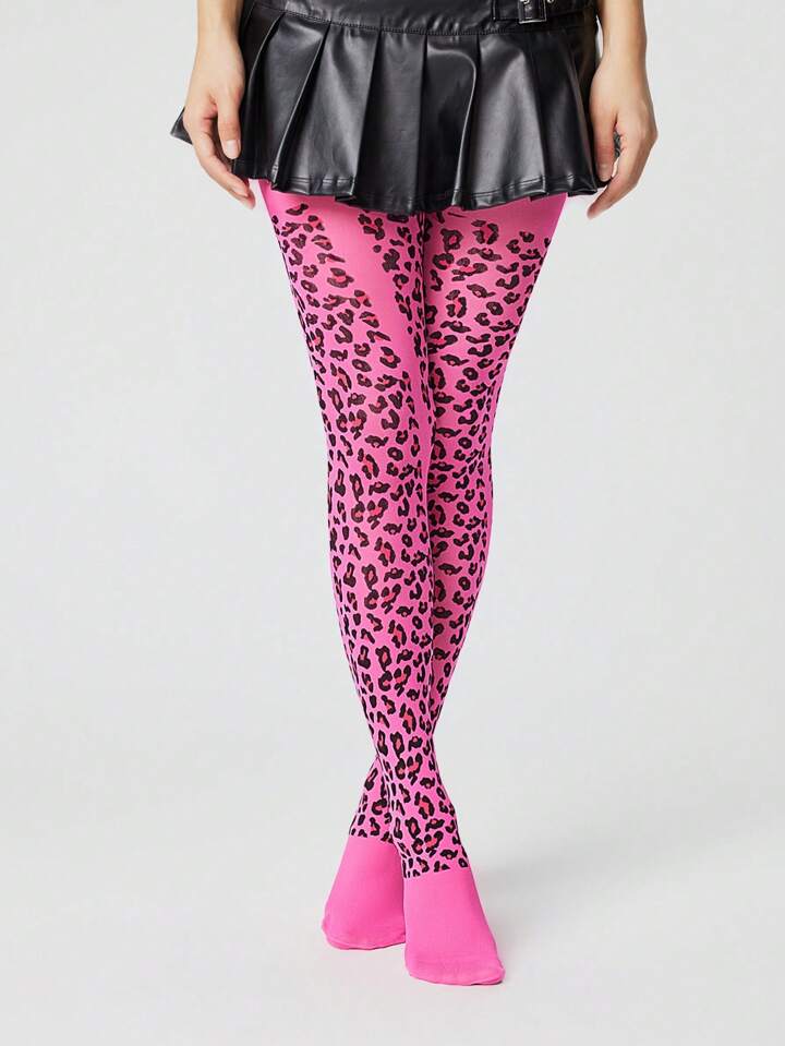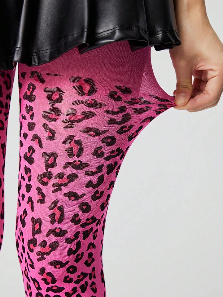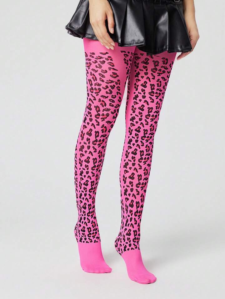 Goth 1 Pair Dark Leopard Print Tights, Suitable For Pairing With Skirts, All Season
