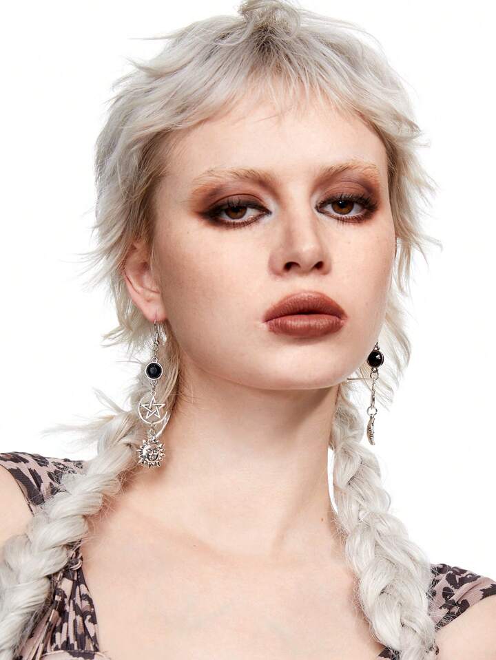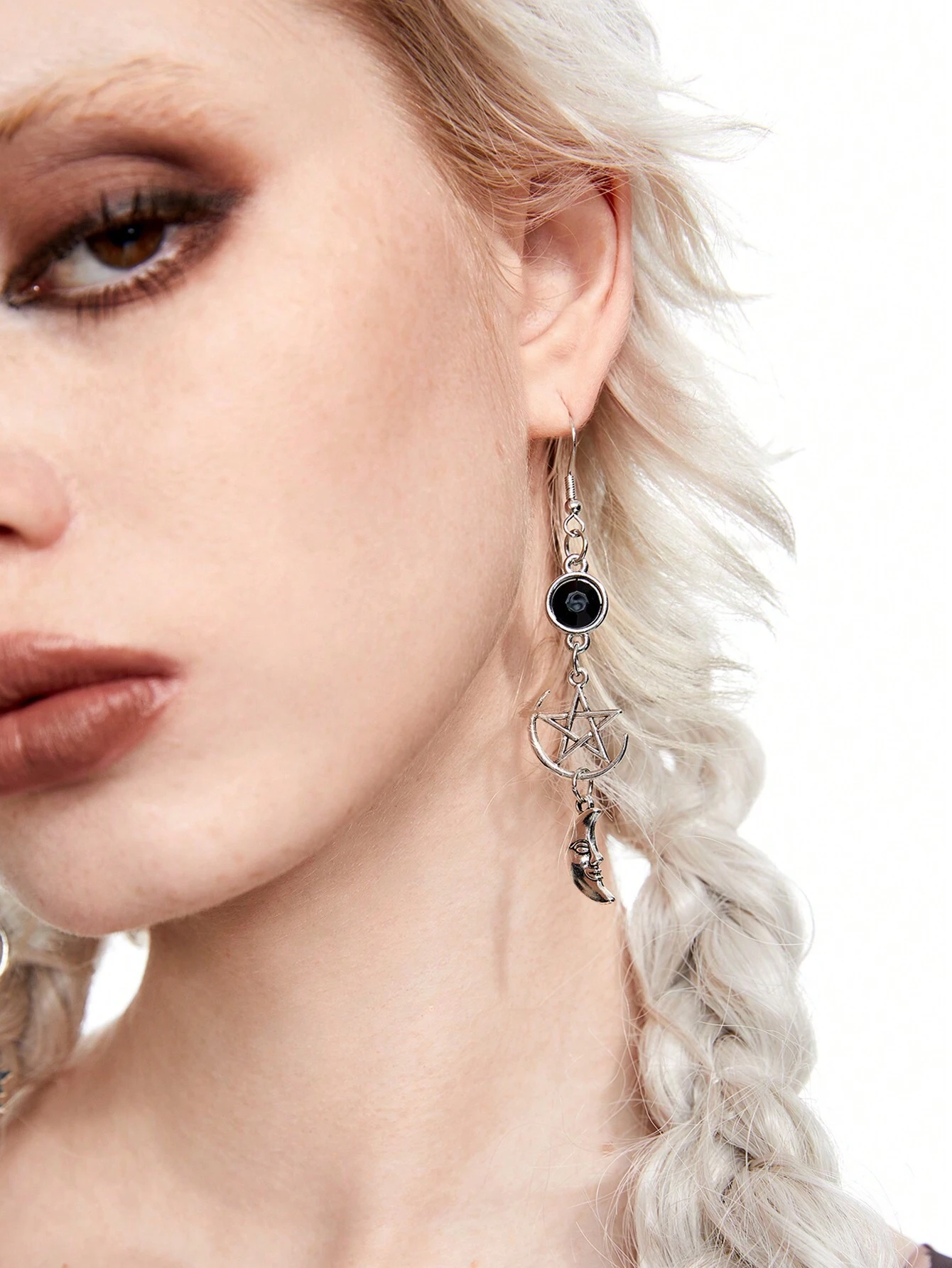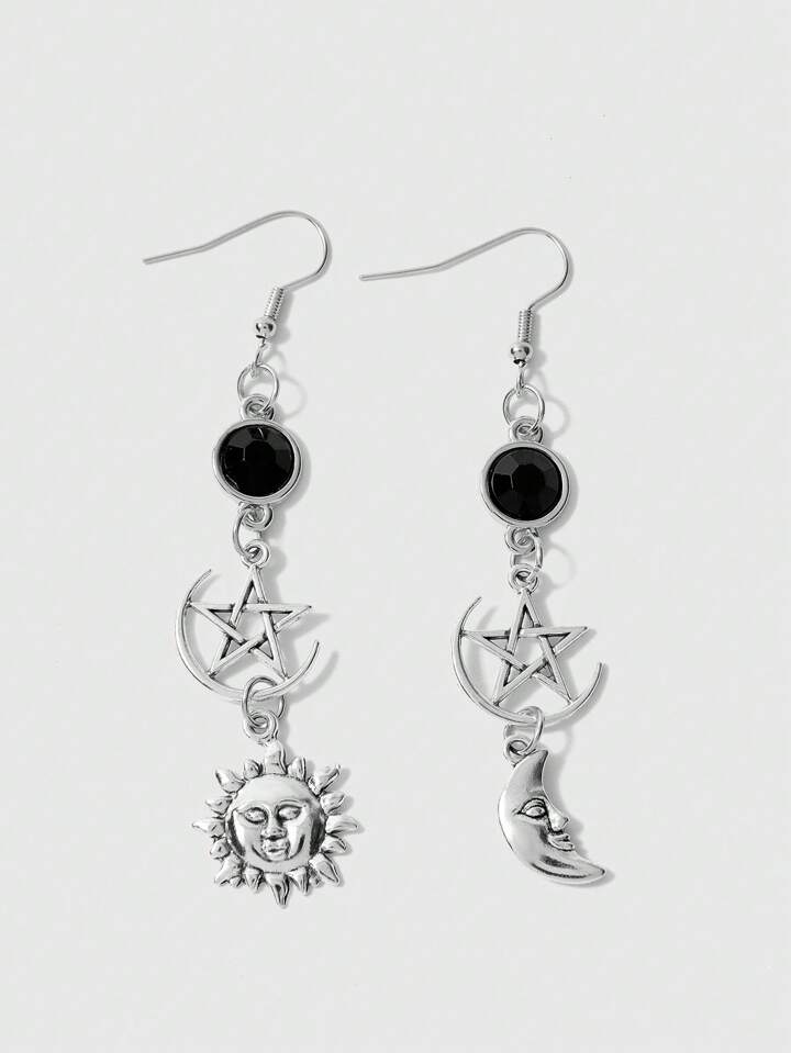 Goth 1 Pair Halloween Punk Vintage Boho Sun Moon Dangle Earrings