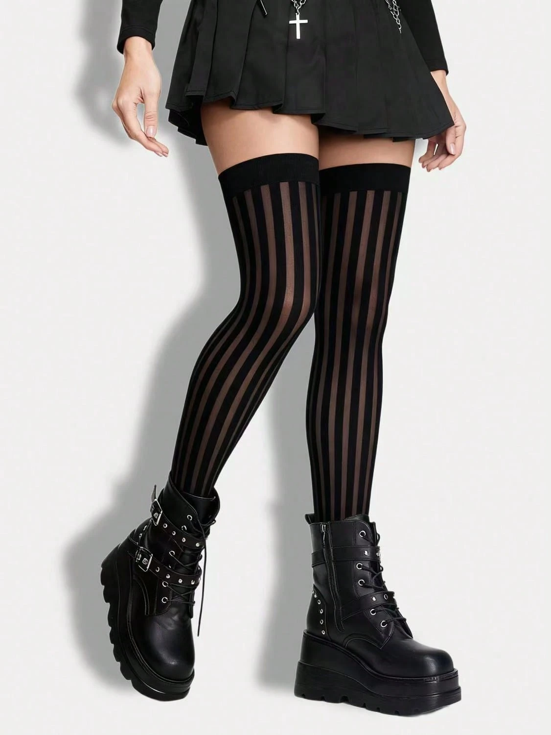 Goth 1 Pair High Elasticity Black Thigh High Socks For Women
