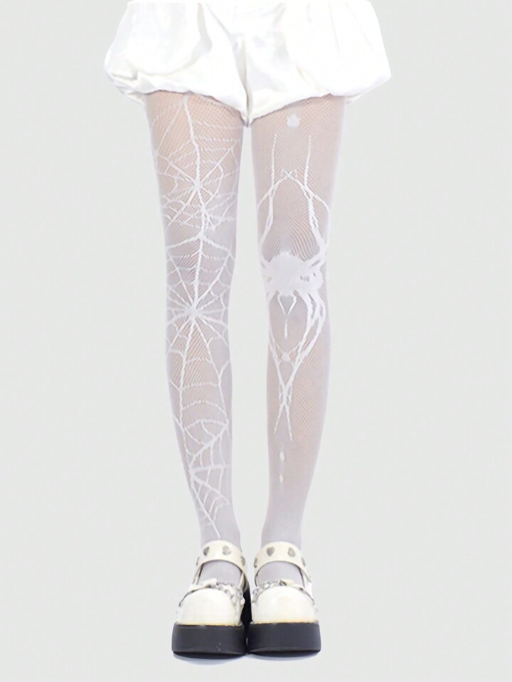 Goth 1 Pair Spider & Spider Web Fishnet Pattern Pantyhose