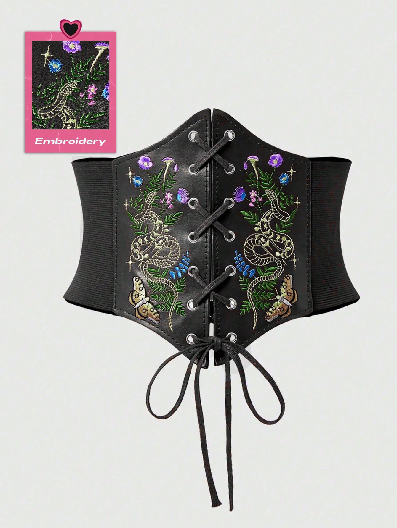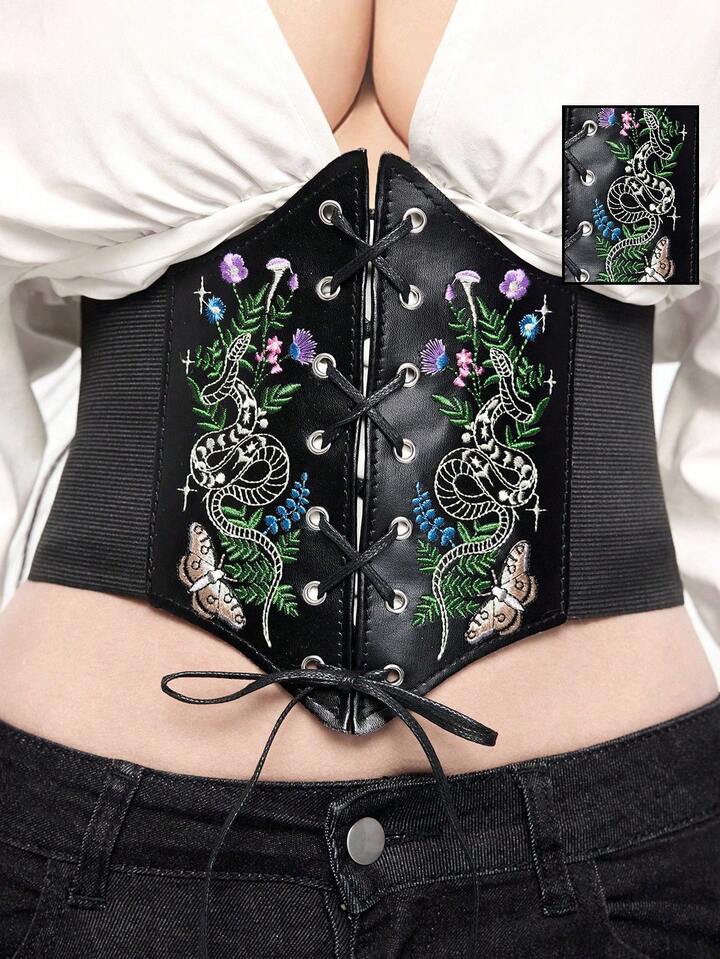 Goth 1-Piece Women's Flowers Grass Snake Moth Pattern Decoration Dark Style Leather Material Dark Style Hexagonal Waist Corset Waist Girdle Dress Accessories Daily Versatile Halloween Accessories