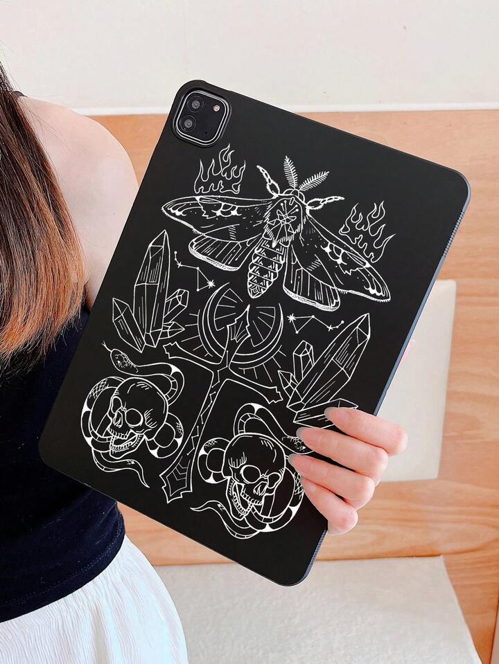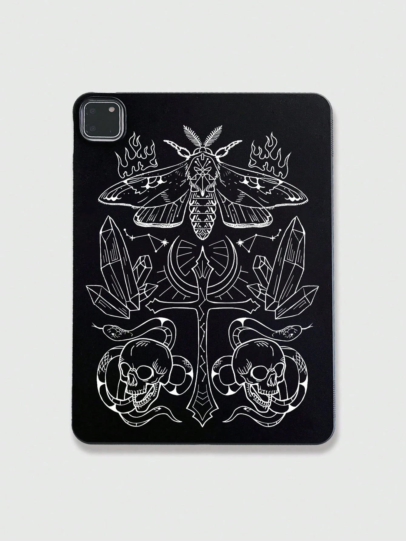 Goth 1186024 Moth Cross, Skull Snake Mineral Symmetric Pattern Black IPad Tablet Case, Halloween