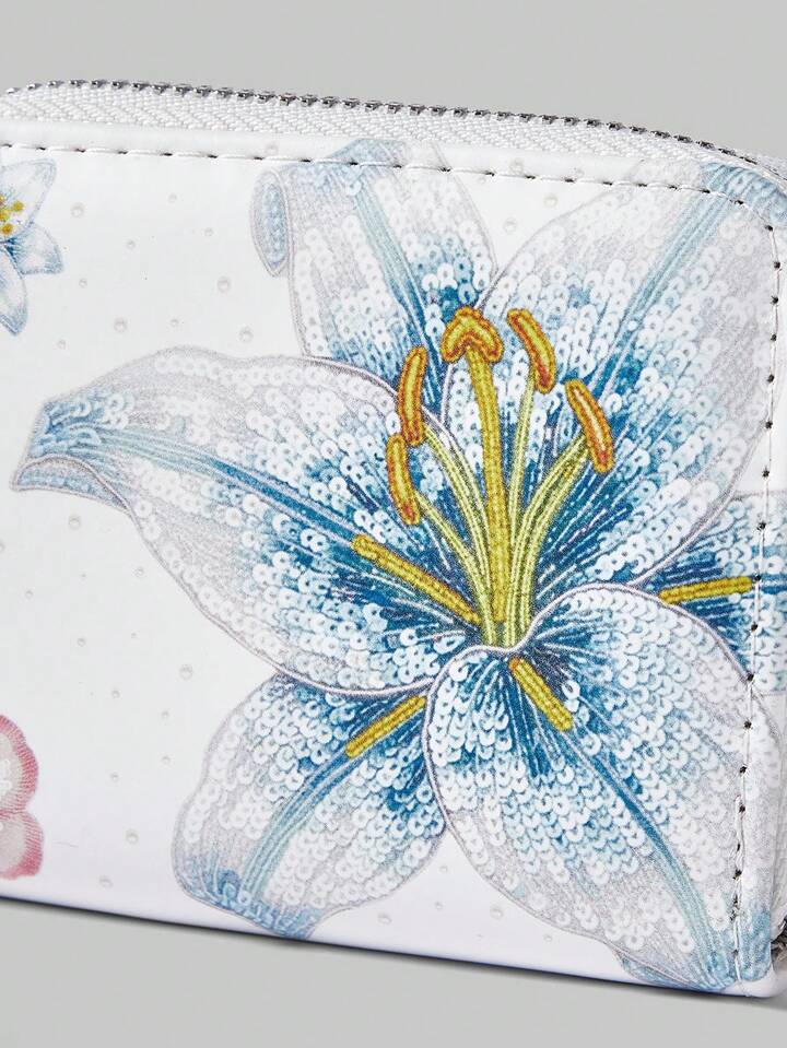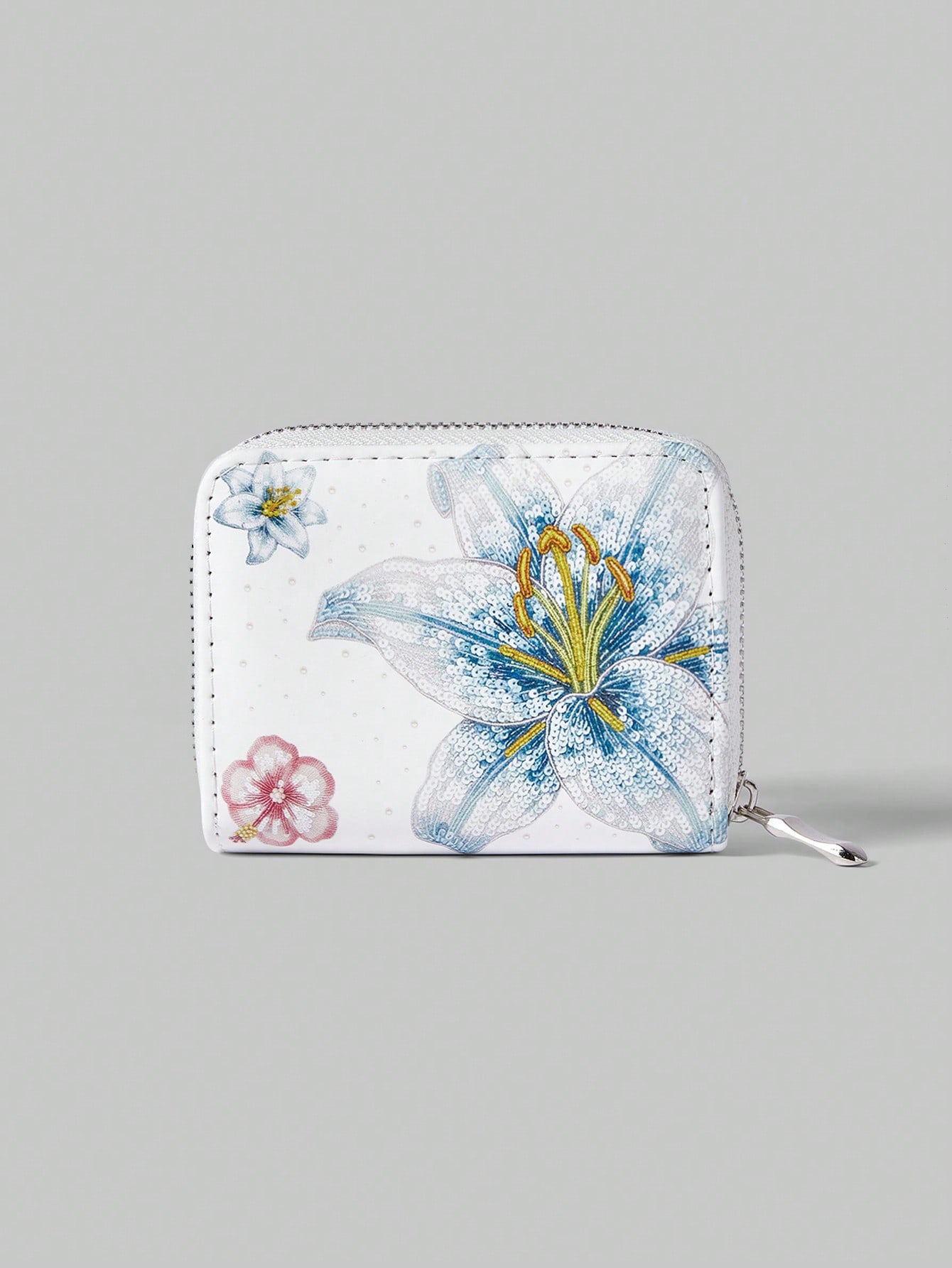 Goth 1Pc Crystal Flower Design Minimalist Style Zipper Coin Wallet, Suitable For Women