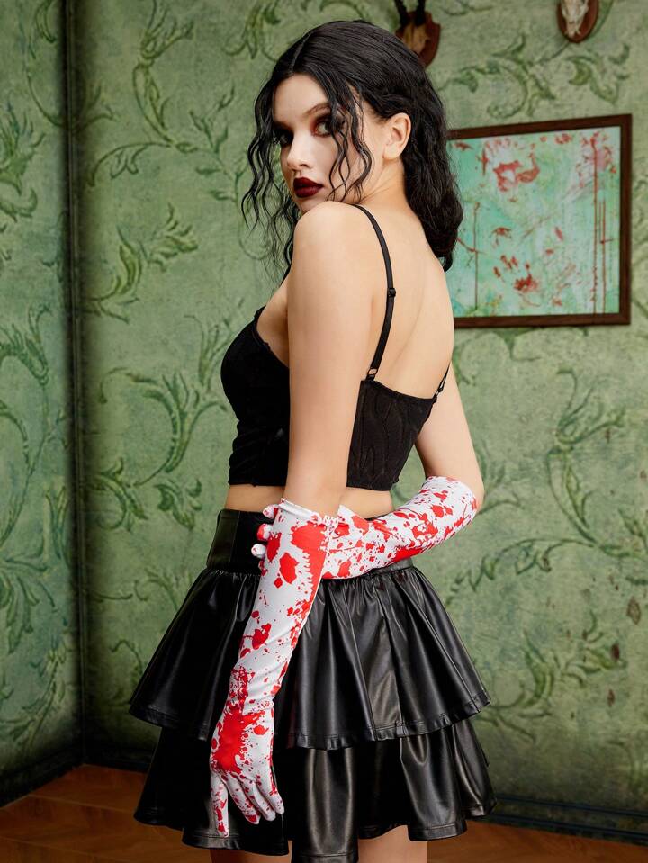 Goth 1pair Blood Pattern Long Gloves