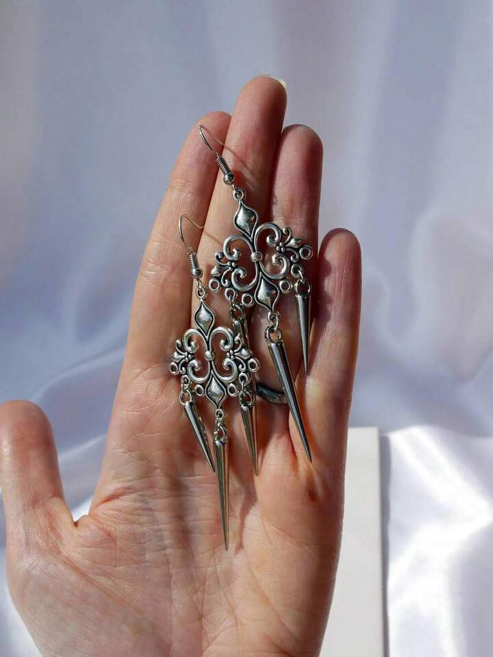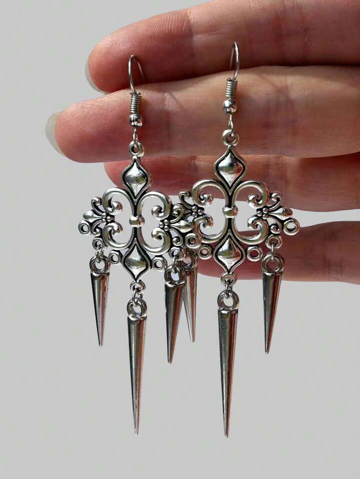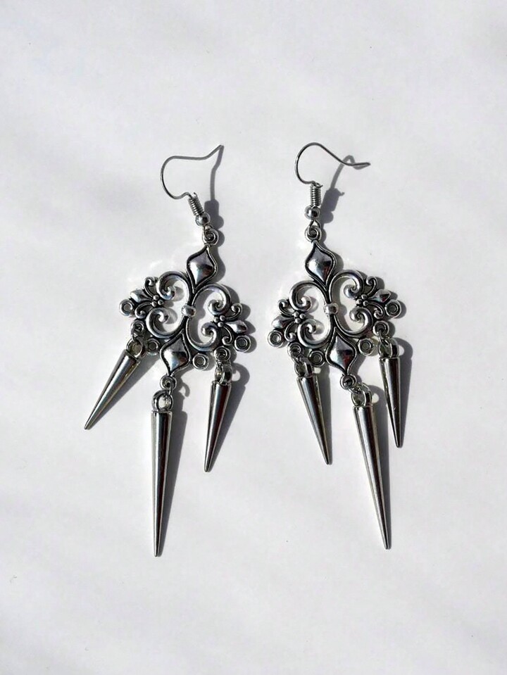 Goth 1pair Fashion Iron Alloy Spiked Decor Drop Earrings For Women For Daily Decoration