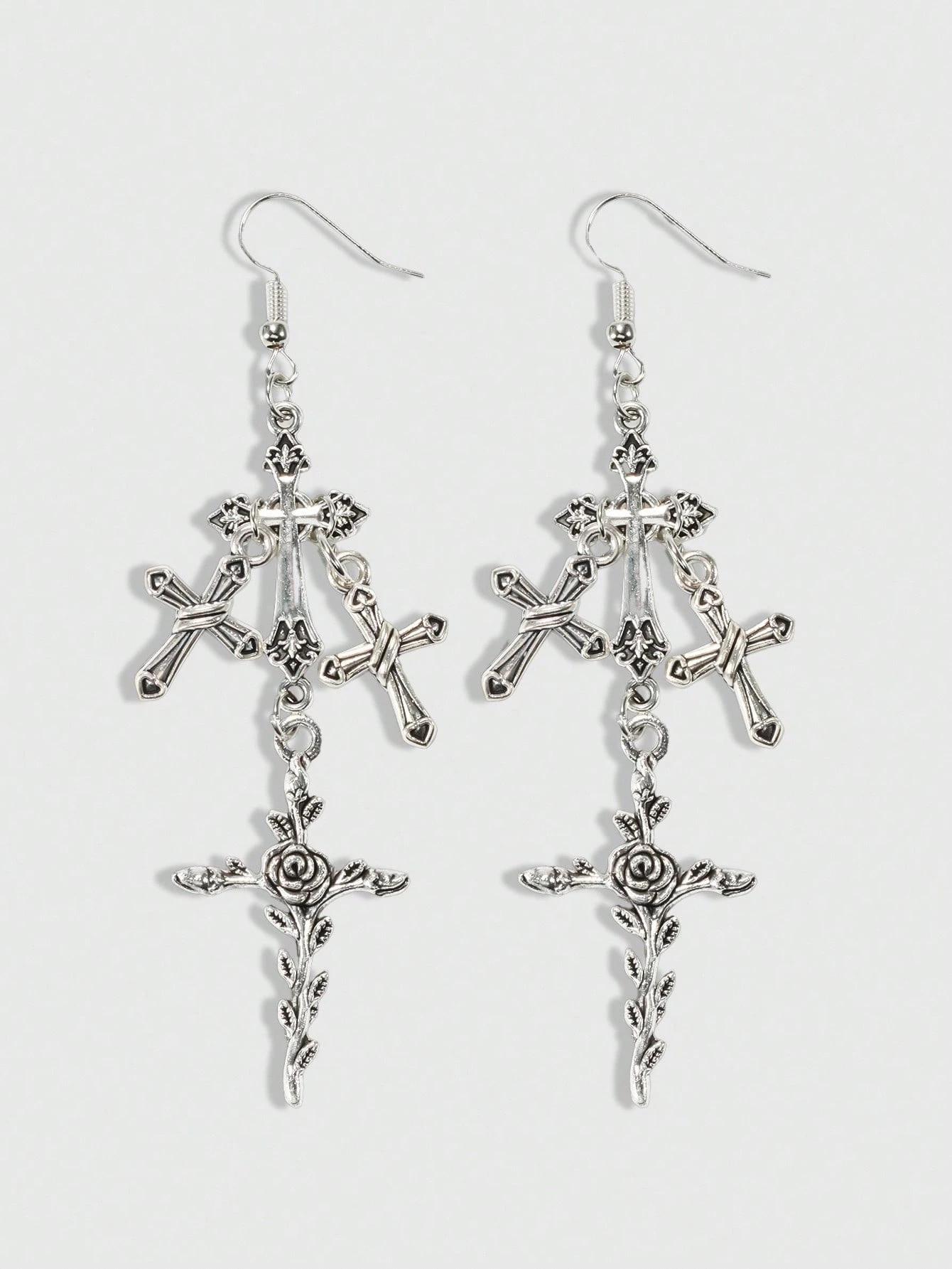 1pair Halloween Gothic Style Cross Shaped Drop Earrings For Christmas
