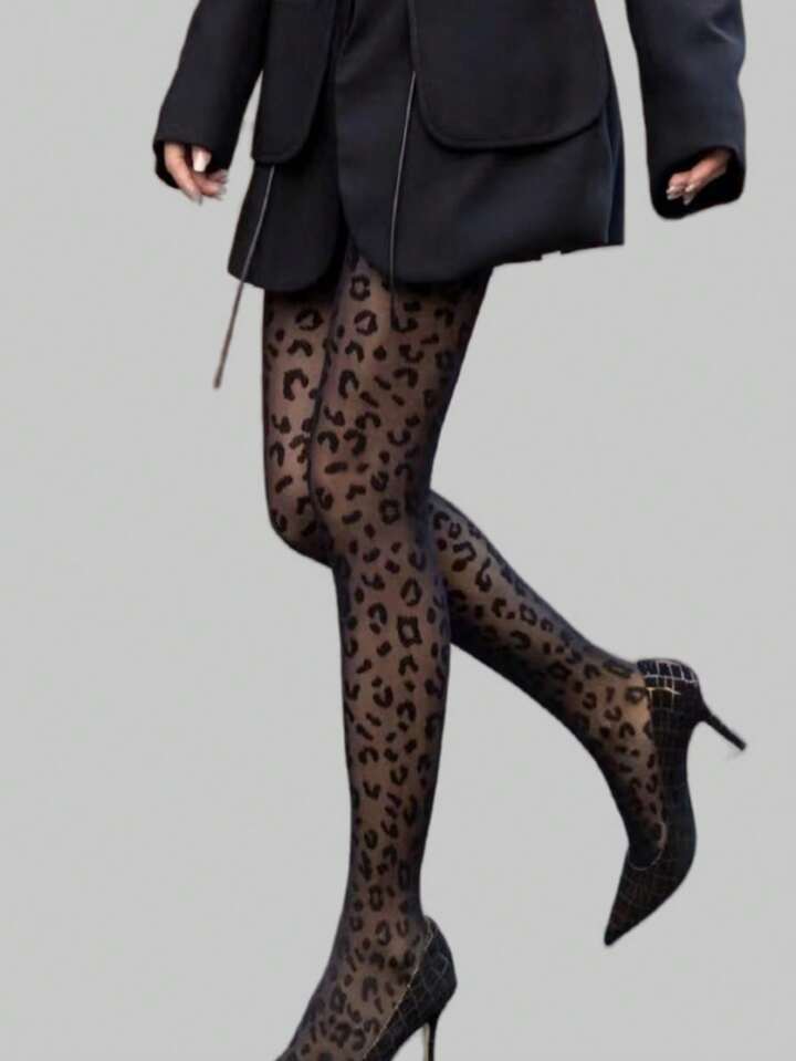 Goth 1pair Leopard Print Tights Stockings For Women, All Seasons
