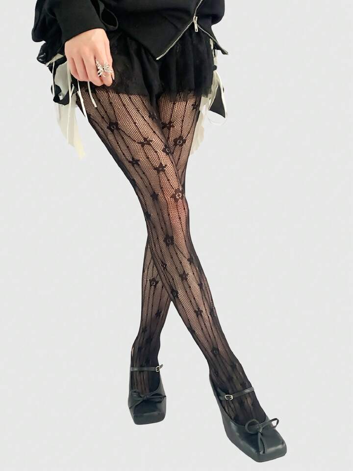 Goth 1pair Personalized Jacquard Vertical Striped Floral Fishnet Pantyhose