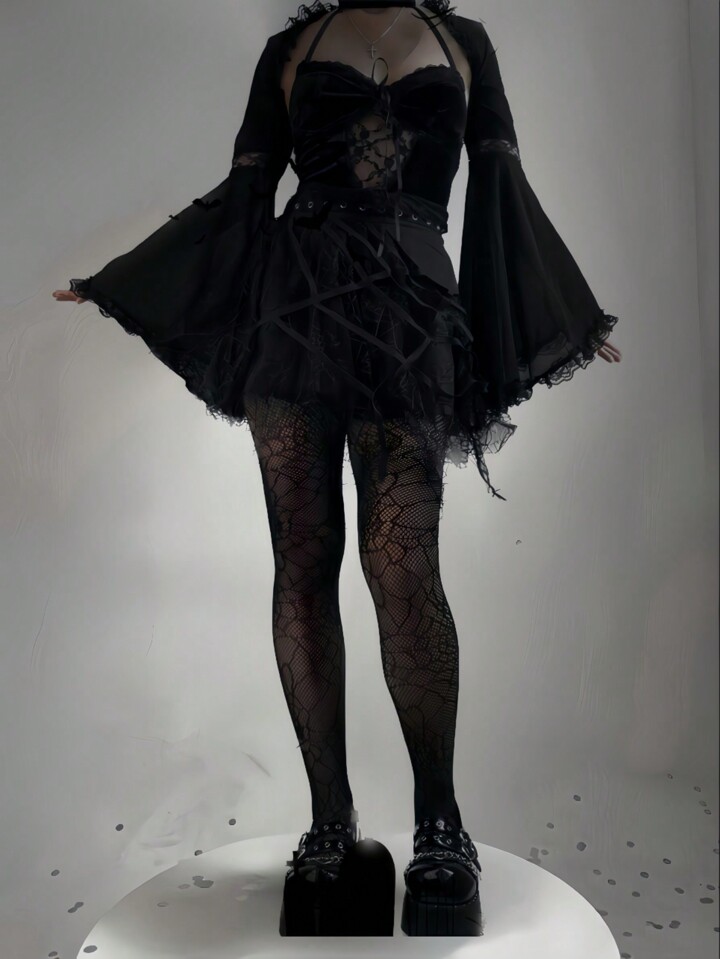 Goth 1pair Women Spider Web Pattern Fishnet Tights