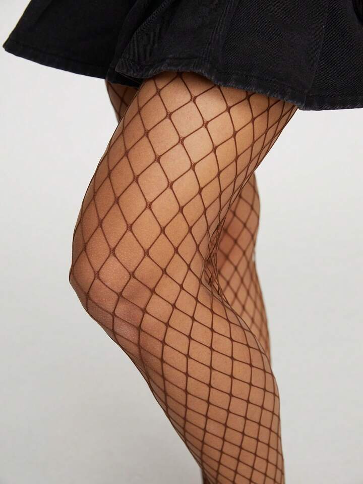 Goth 1pair Women's Coffee Brown Medium-Large Fishnet Stockings For All Seasons